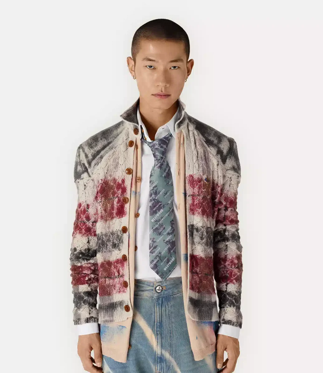 Nuestra corbata luce el característico estampado Toile de Jouy, con un romántico motivo pastoral que recorre todo el diseño. Con un corte ancho que se estrecha hasta una punta clásica, la pieza se remata con el llamativo motivo «Westwood» repetido a lo largo de toda la silueta en diferentes tipografías.p>