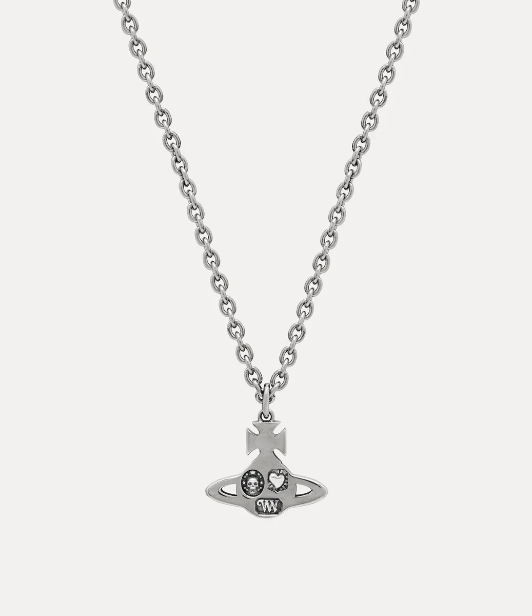 Nuestro collar con colgante Man. Crispin se inspira en el tradicional marcado de contraste, con la iconografía de la casa, intrincadamente detallada, estampada en el centro del diseño. Con la forma clásica de un orbe, el colgante tiene un acabado chapado en antigüedad.