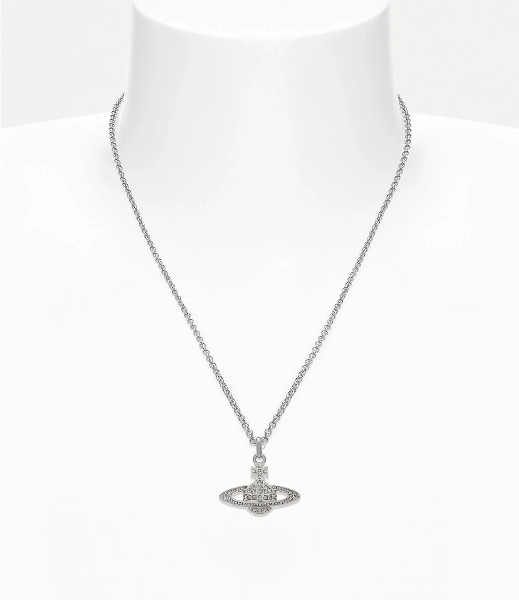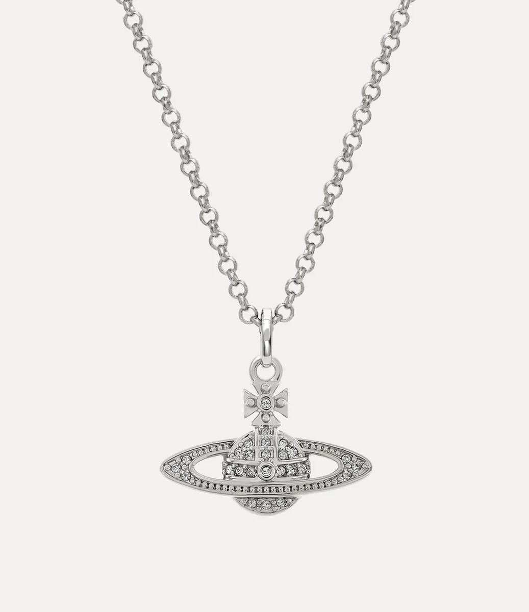 La silueta del orbe de la casa es sinónimo de la visión de Vivienne de llevar la tradición al futuro. El collar con colgante Man. Mini Bas Relief Orb presenta la forma de orbe, adornada con detalles de cristales blancos y baño plateado.