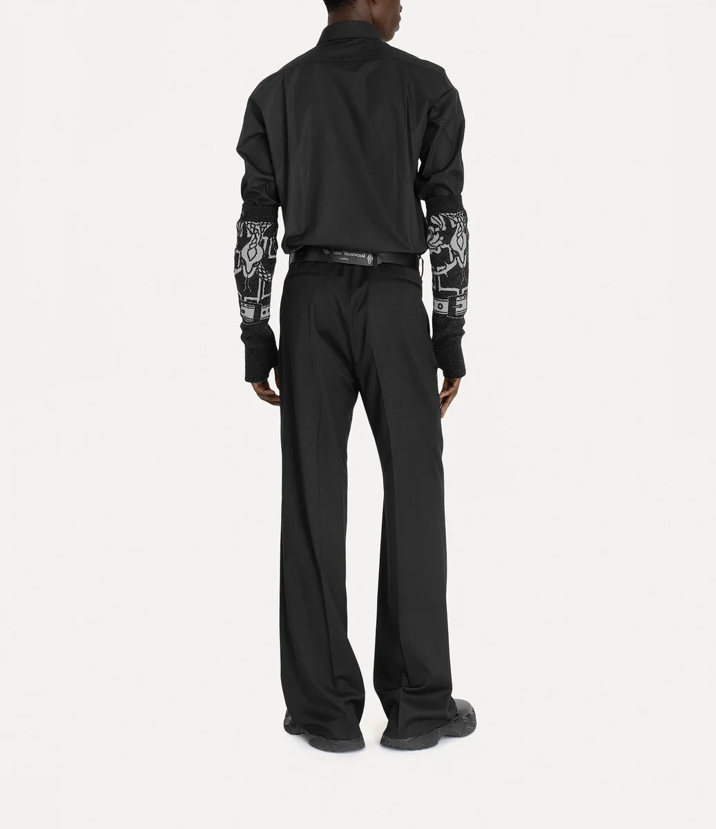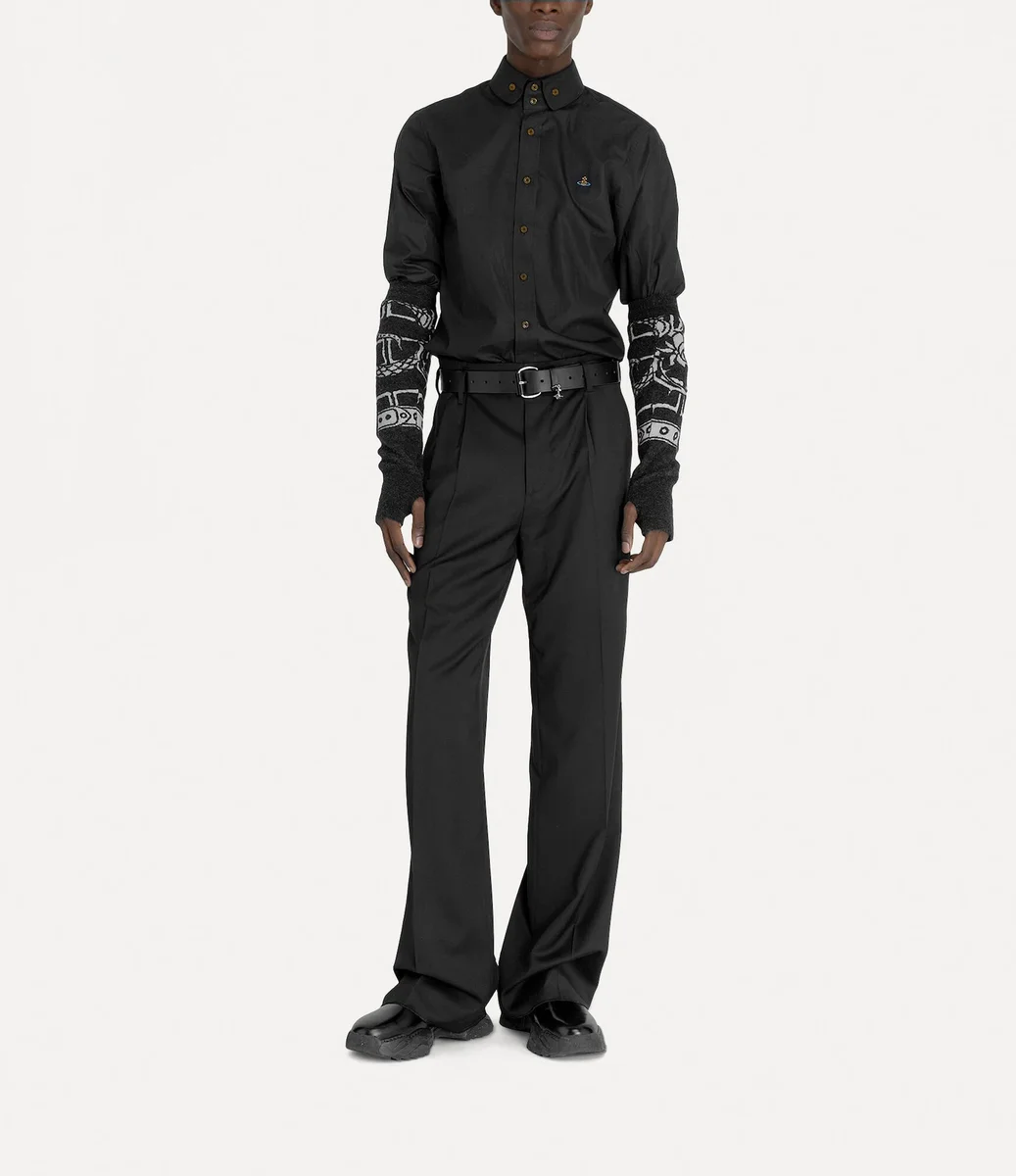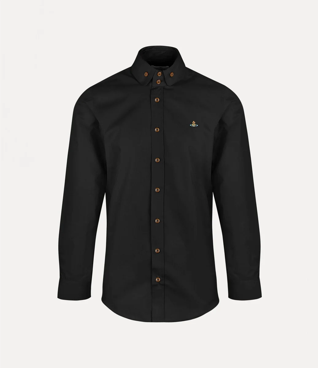 La silueta de la camisa Krall de dos botones se inspira en un diseño de archivo, con el icónico cuello de dos botones de Vivienne. La prenda presenta nuestro característico bordado de la esfera en el lado izquierdo del pecho, sinónimo de la visión de Vivienne de lanzar la tradición hacia el futuro.