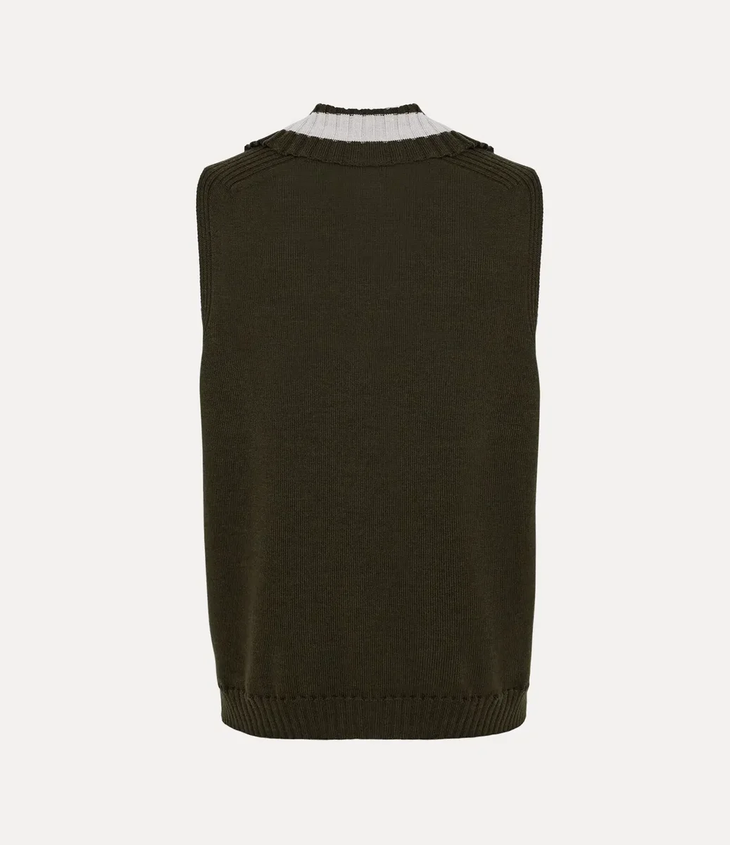 Nuestro chaleco Fisherman está confeccionado en lana suave y se caracteriza por su escote en V profundo, enmarcado con un detalle de doble raya blanca que le da un toque deportivo. Diseñado con sisas caídas para crear una caída relajada e informal, la prenda está rematada con un dobladillo recto acanalado que le da una silueta estructurada.