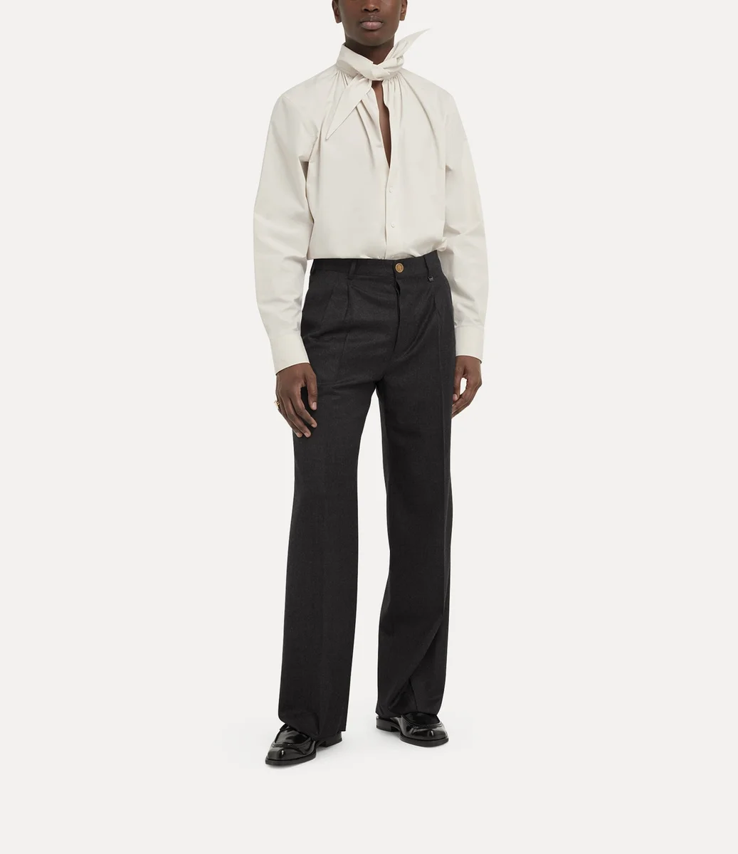 Los pantalones Rafael de Vivienne Westwood, confeccionados en lana suave, están delicadamente tejidos con un acabado metálico cepillado y cuentan con una cintura alta.