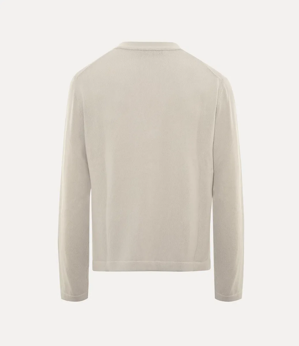 Nuestro cárdigan Alex de archivo se ha renovado esta temporada y se ofrece en una suave mezcla de algodón y cachemira. La prenda presenta un diseño con botones en la parte delantera, cuello en V y un detalle esférico en el lado izquierdo del pecho, sinónimo de la visión de Vivienne de lanzar la tradición hacia el futuro.