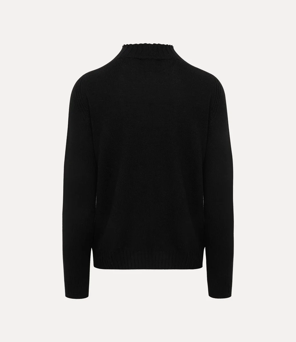 Nuestro jersey Fisherman está confeccionado en lana suave y presenta un cuello acanalado que se prolonga hasta el dobladillo recto. Con mangas raglán largas y puños acanalados, la prenda está adornada con un orbe bordado multicolor en el lado izquierdo del pecho, que recuerda la visión de Vivienne de lanzar la tradición hacia el futuro.