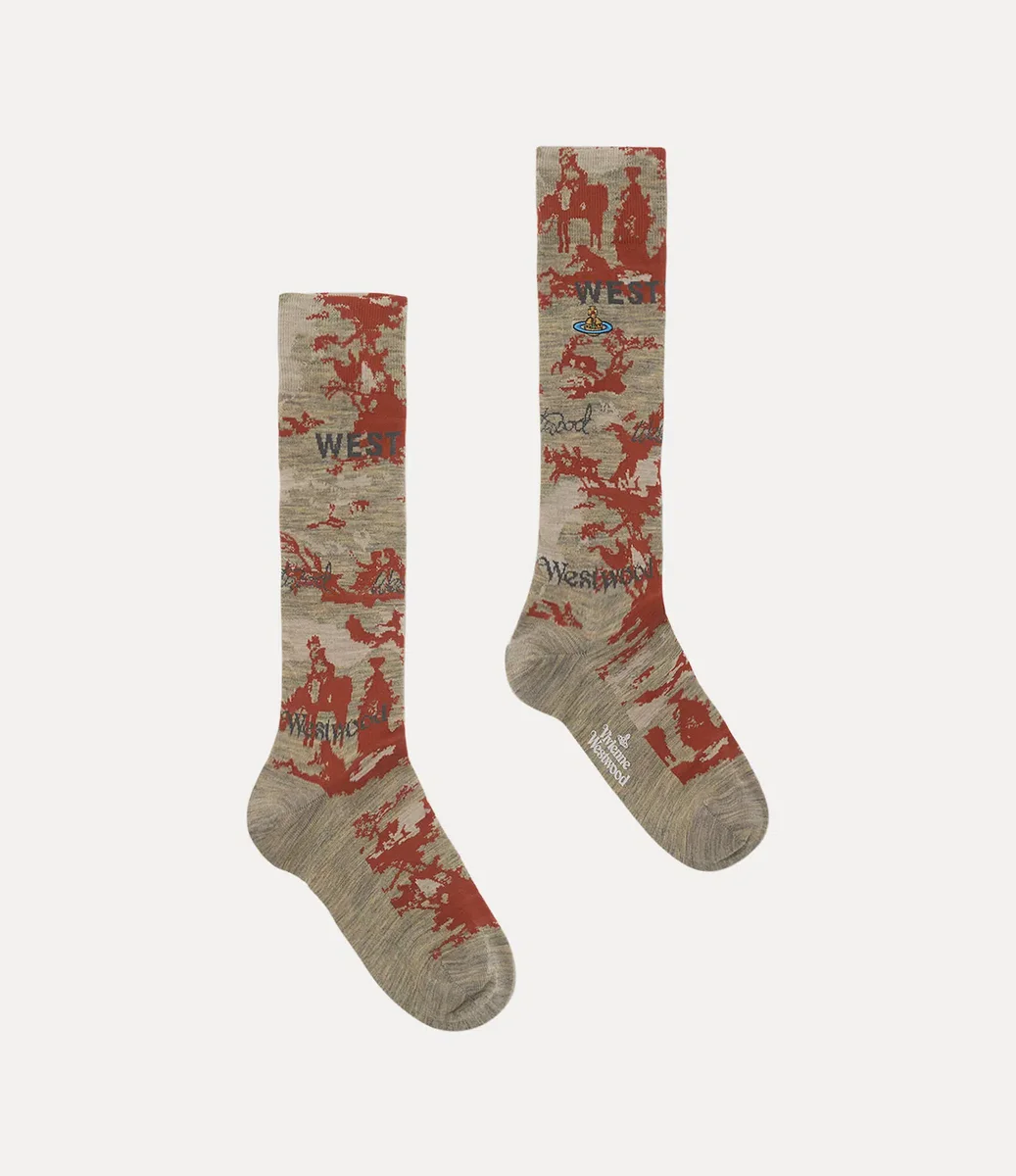 Nuestros calcetines tobilleros están tejidos con un jacquard Toile de Jouy, que ofrece un romántico motivo pastoral. El par está confeccionado con una mezcla de lana merino extrafina y rematado con el motivo del orbe de la casa bordado con hilo multicolor.