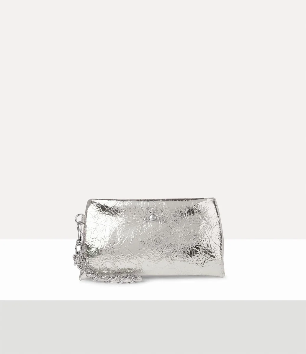 La bolsa de mano Sadie se ha rediseñado en piel metalizada con efecto arrugado, inspirándose en el rico archivo de la casa. El diseño presenta una cadena plateada entretejida con detalles de piel en tonos similares, rematada con un motivo esférico pulido en la parte delantera, sinónimo de la visión de Vivienne de lanzar la tradición hacia el futuro.