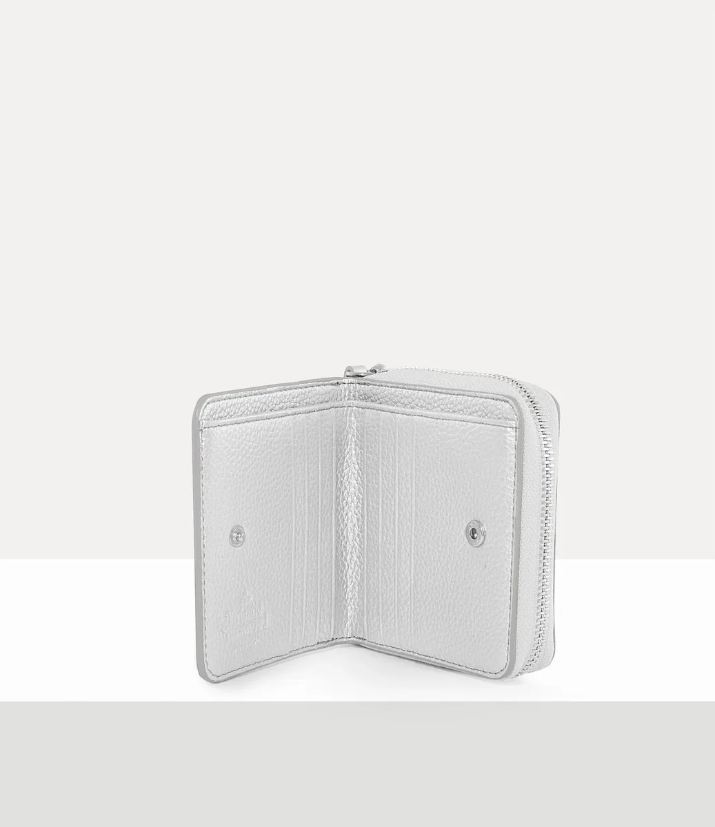 Nuestra cartera mediana con cremallera está confeccionada en piel sintética con relieve granulado y cuenta con un interior organizado con ranuras para tarjetas integradas y un compartimento específico para recibos y notas. La pieza ofrece una silueta redondeada, rematada con el motivo metálico «Line Orb», que recuerda la visión de Vivienne de lanzar la tradición hacia el futuro.
