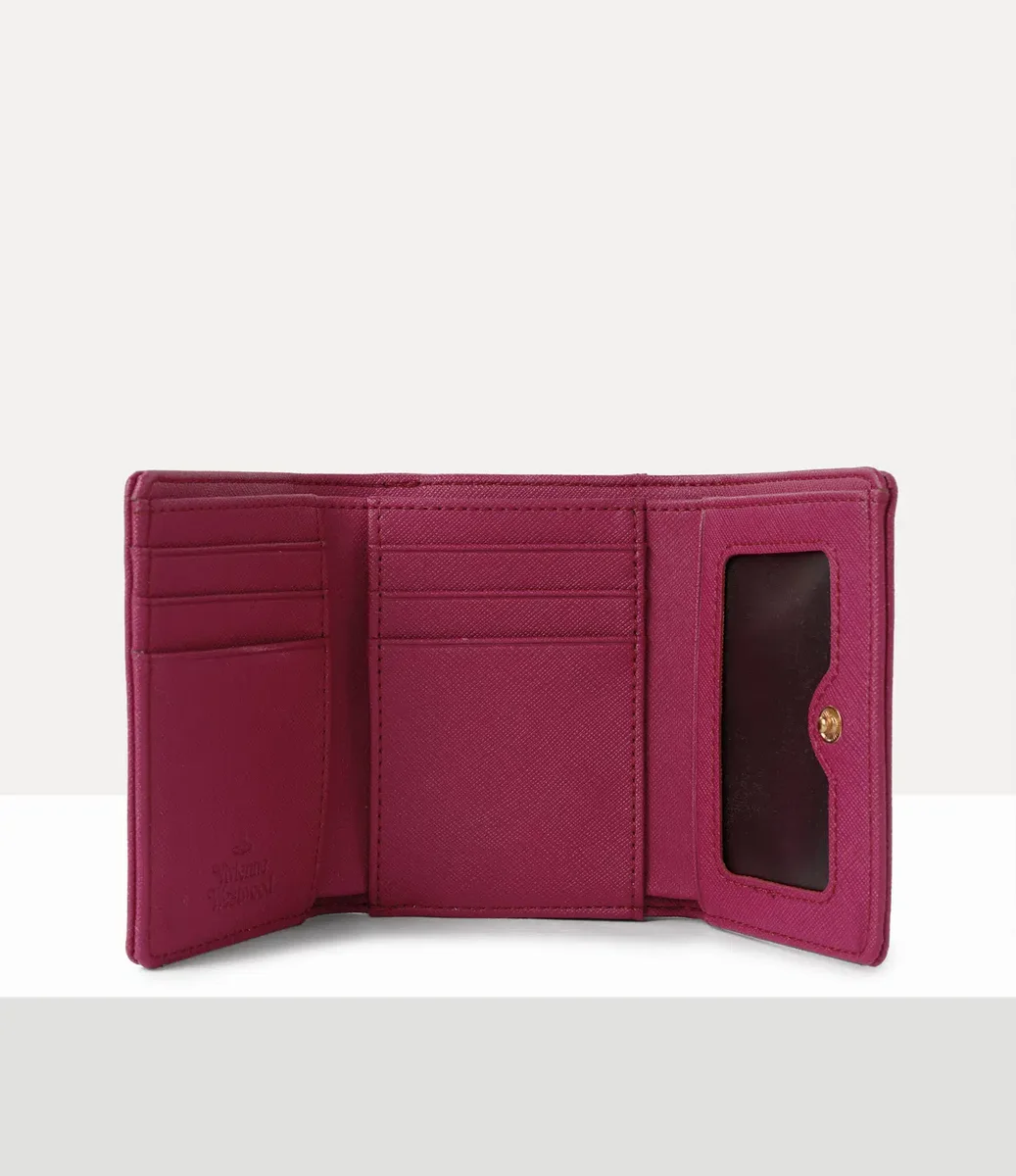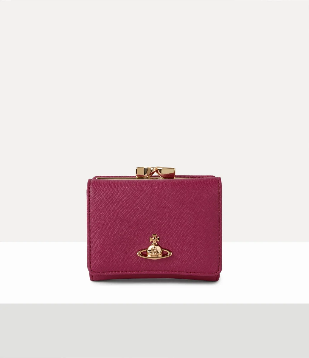 Nuestra cartera Small Frame presenta un perfil clásico de piel de PU, con un acabado en relieve saffiano en todo el diseño. Adornada con un motivo de orbe en bajorrelieve dorado en la parte delantera, la pieza recuerda la visión de Vivienne de lanzar la tradición hacia el futuro.