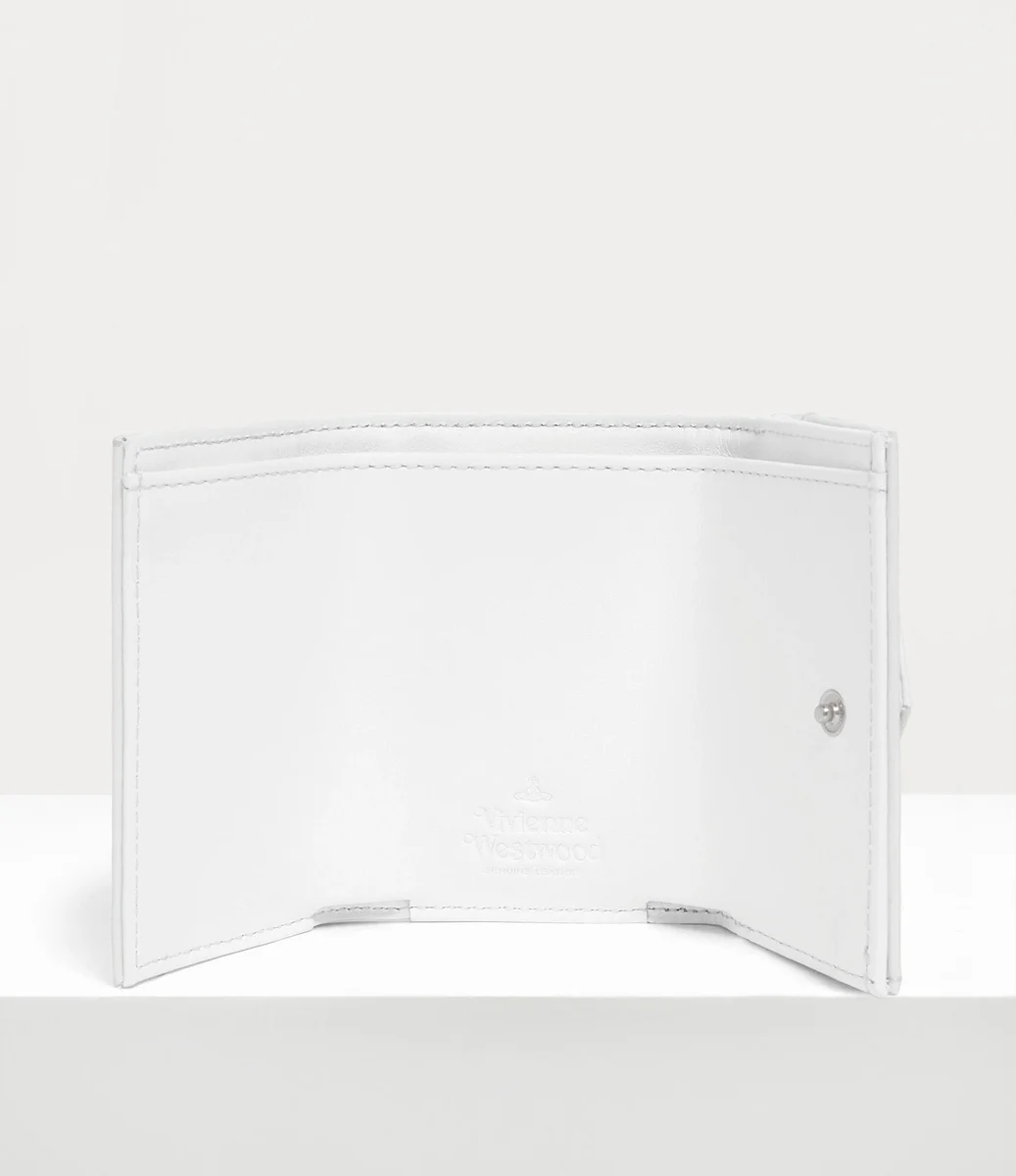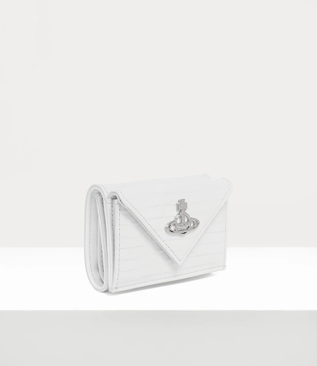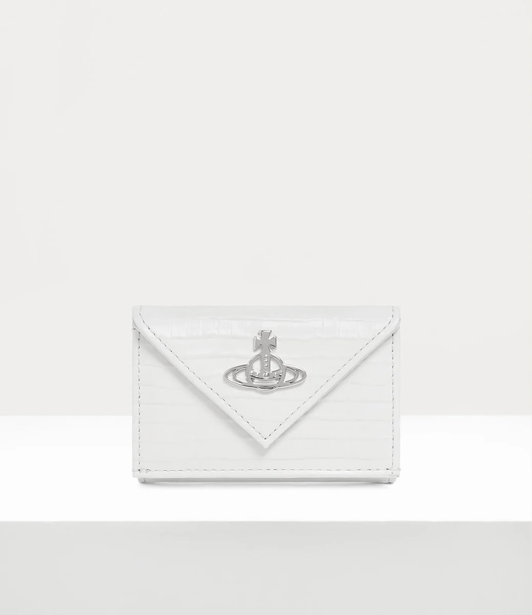 Nuestra cartera tipo sobre se reinventa en la piel con relieve efecto cocodrilo mini de esta temporada. Acabada con el motivo metálico «Line Orb» característico de la casa en el cierre de botón a presión, la pieza encarna la visión de Vivienne de impulsar la tradición hacia el futuro.