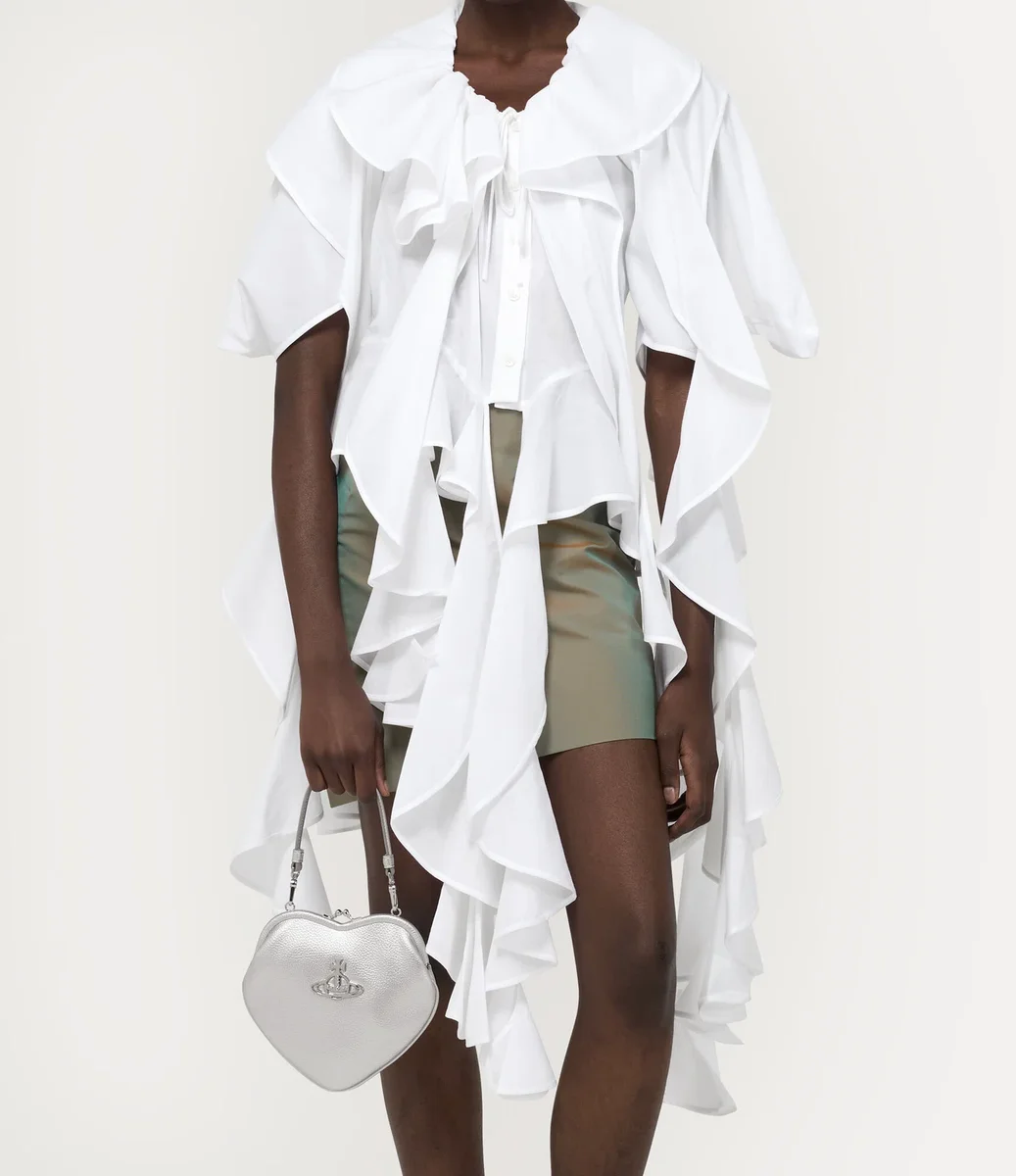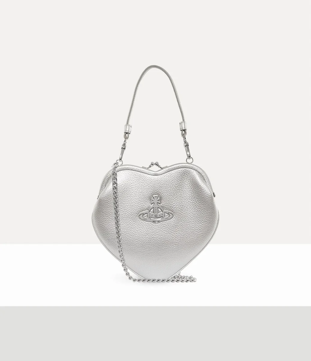 La forma de corazón se ha convertido en un estilo característico de la marca, ya que ha aparecido en muchas colecciones a lo largo de la historia de la casa. El bolso Belle Heart Frame, de piel sintética, presenta una silueta con relieve granulado, decorada con el característico «Line Orb» de la casa en el panel frontal, que encarna la filosofía de unir el pasado con el futuro.