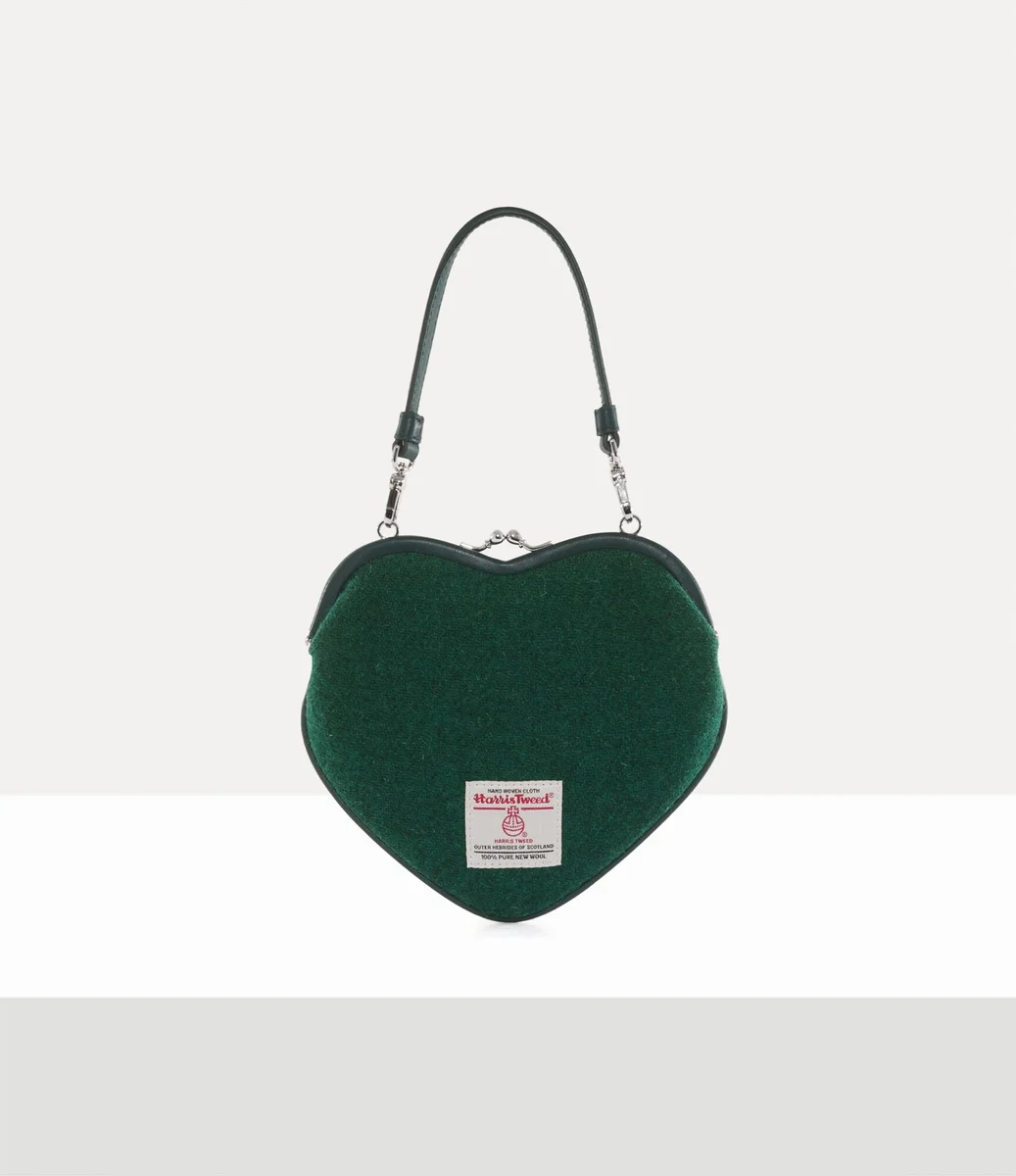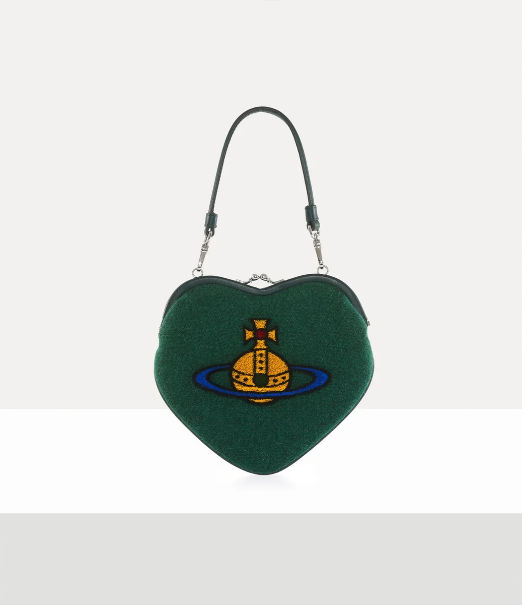 El bolso Belle Heart Frame de Vivienne Westwood, confeccionado en lana, presenta la clásica silueta en forma de corazón y está rematado con nuestro motivo Orb reinterpretado con un acabado acolchado.