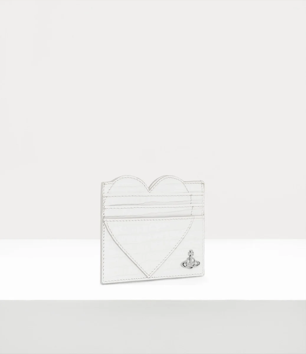 Nuestro tarjetero Heart presenta un detalle de corazón asimétrico, que recuerda el afecto de Vivienne por la humanidad y el planeta. La pieza ofrece el diseño «Mini» con efecto cocodrilo en relieve de esta temporada, rematado con un motivo «Line orb» en tono plateado pulido en el panel frontal, que encarna la visión de la casa de lanzar la tradición hacia el futuro.