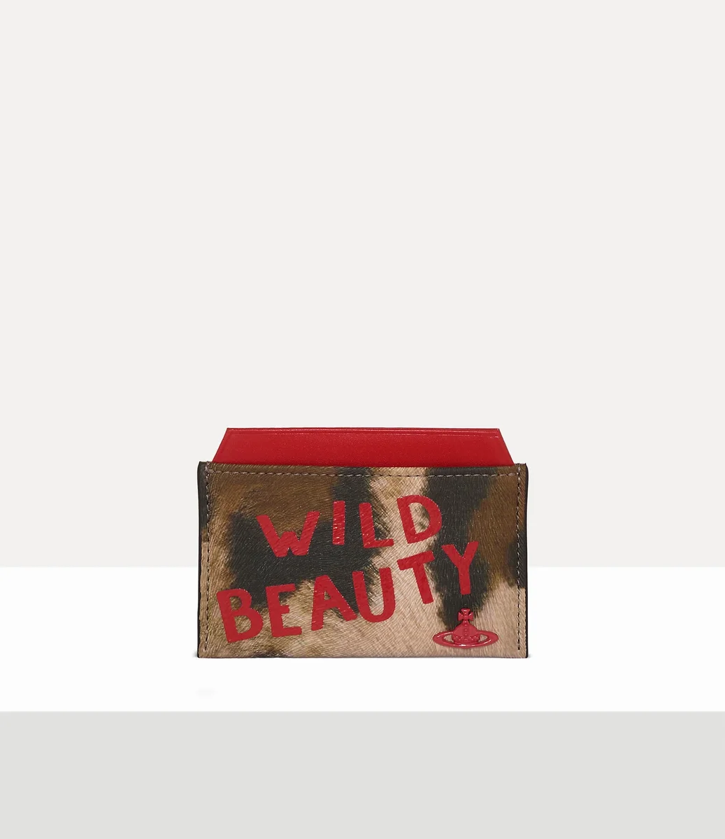 Nuestro tarjetero plano está adornado con un atrevido motivo de estampado de leopardo, que recuerda a la colección Gold Label Otoño-Invierno 2001 de la casa, «Wild Beauty». Acabado con letras rojas en la parte delantera, la pieza está decorada con el característico motivo de esfera en bajorrelieve.