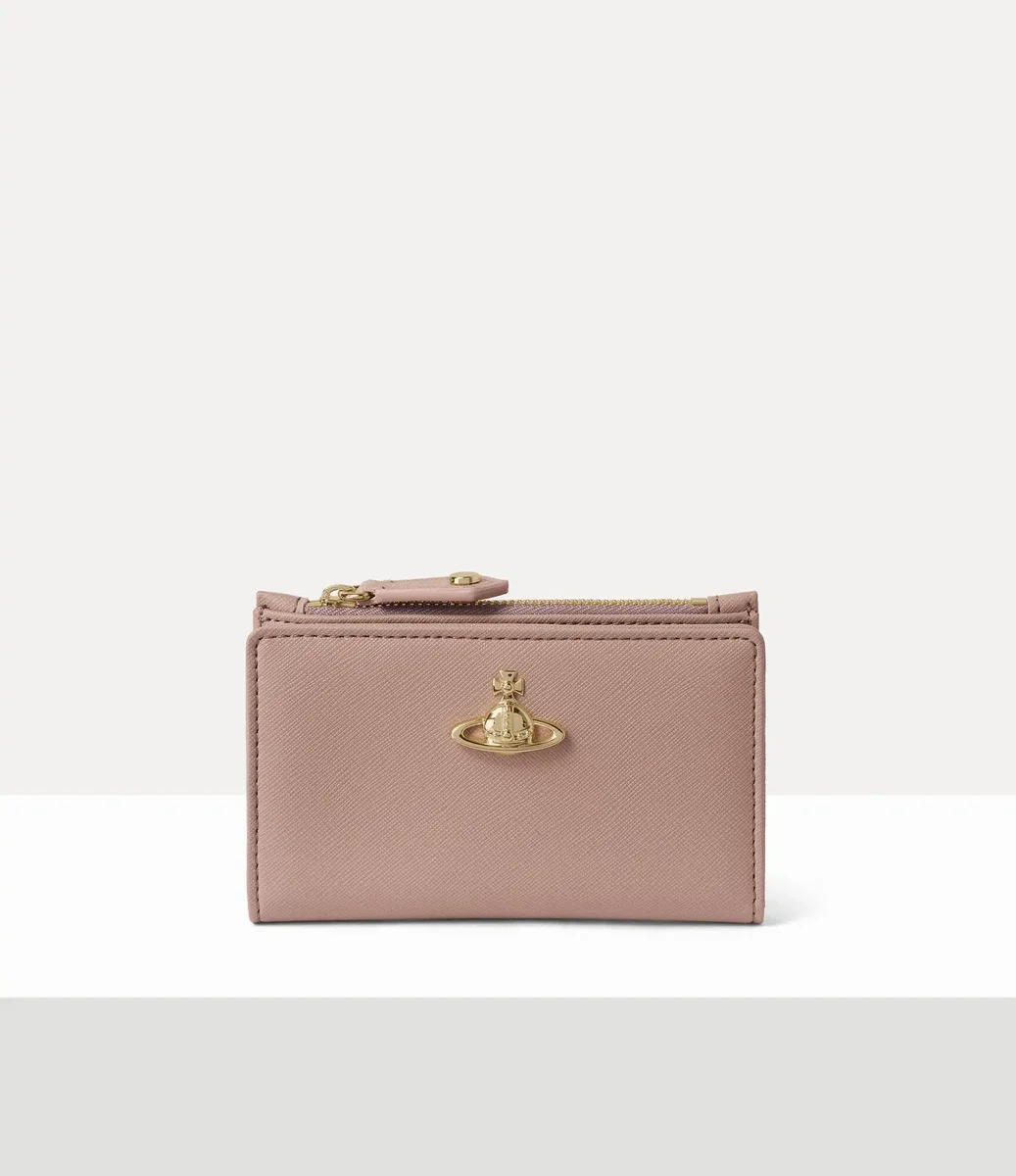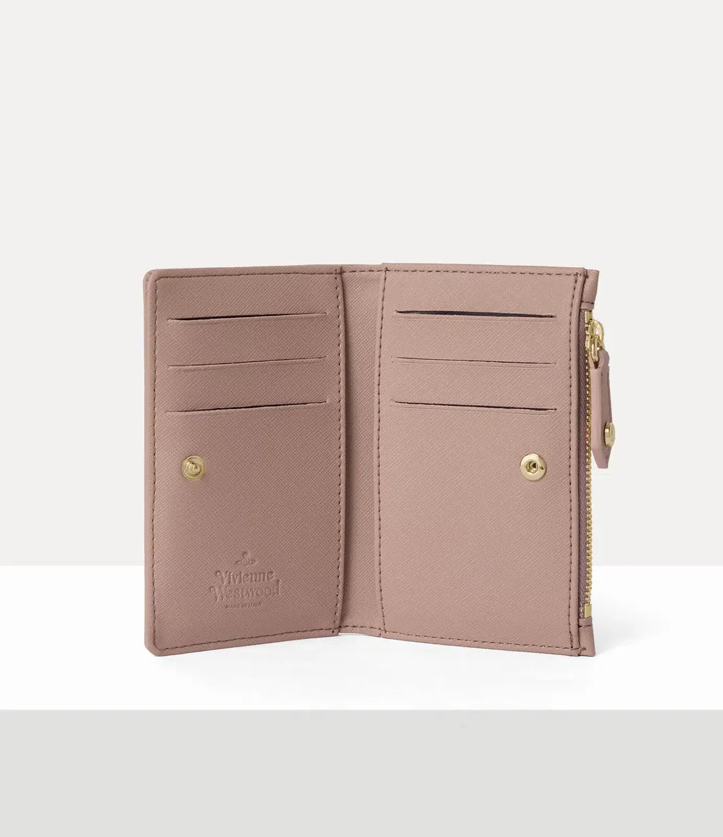El tarjetero Slim Flap vuelve esta temporada con un acabado de PU con relieve saffiano. La pieza está adornada con nuestro motivo de orbe en bajorrelieve en la parte delantera, que recuerda la visión de Vivienne de lanzar la tradición hacia el futuro.
