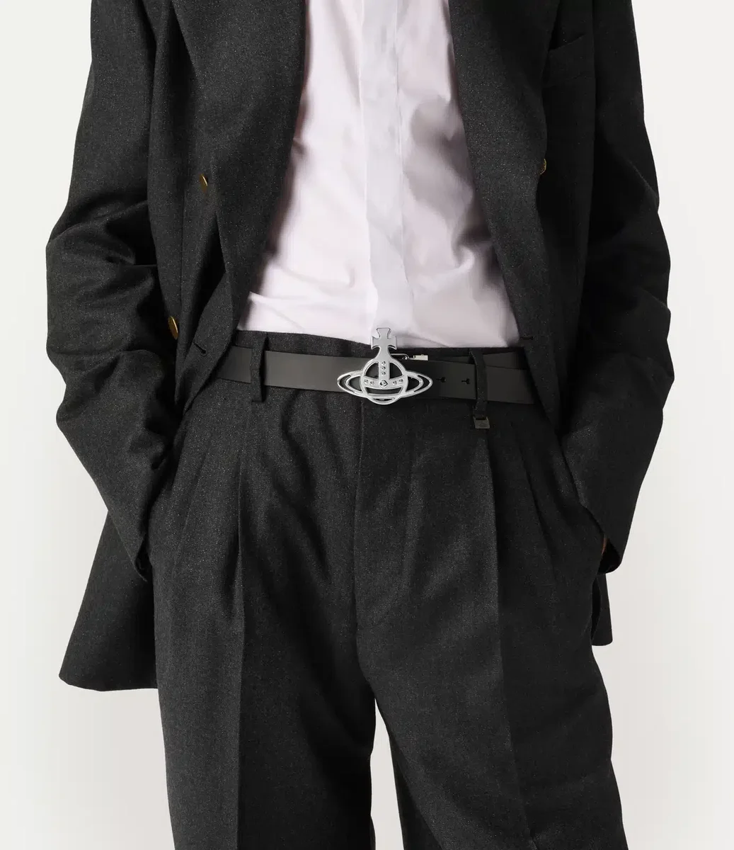 Nuestro cinturón con hebilla Line Orb presenta un baño plateado pulido y está adornado con nuestro motivo «Line Orb» en el cierre de la hebilla, que representa la tradición, rodeado por los anillos celestes de Saturno, que simbolizan el futuro. El diseño ofrece una correa de piel suave, con detalles perforados.