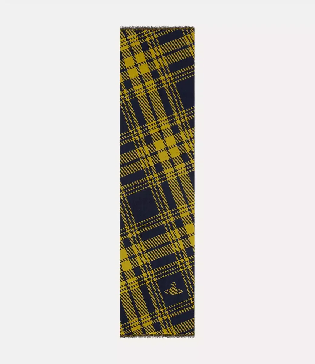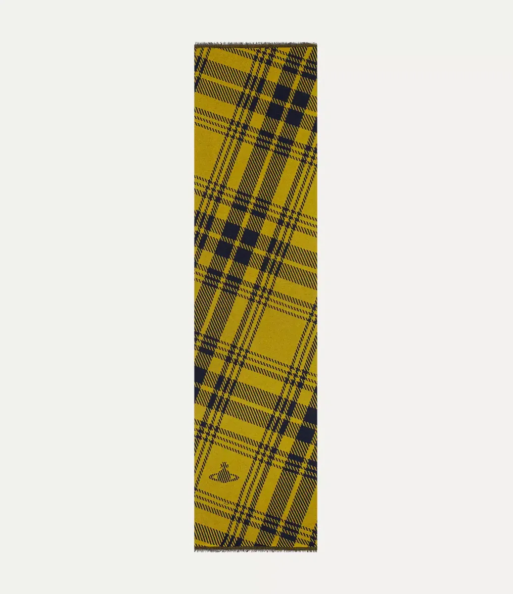 Nuestra bufanda está confeccionada en suave lana y tejida con un motivo tartán, inspirado en las tradicionales vestimentas de las Highlands escocesas. Con un corte rectangular clásico, la pieza está rematada con bordes ligeramente flecosos y el emblema «Silhouette Orb» de la casa.