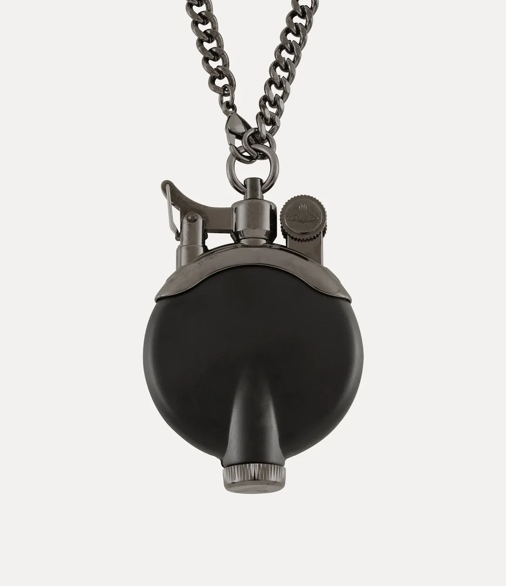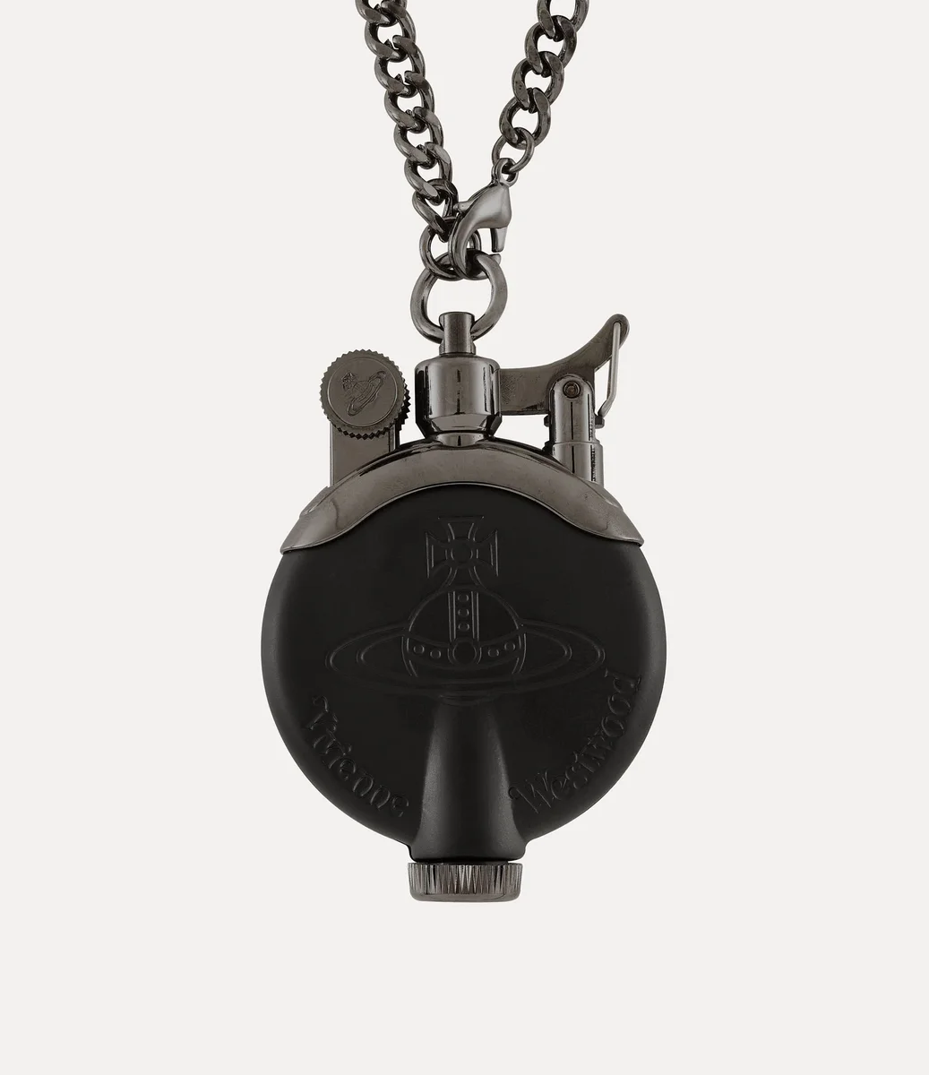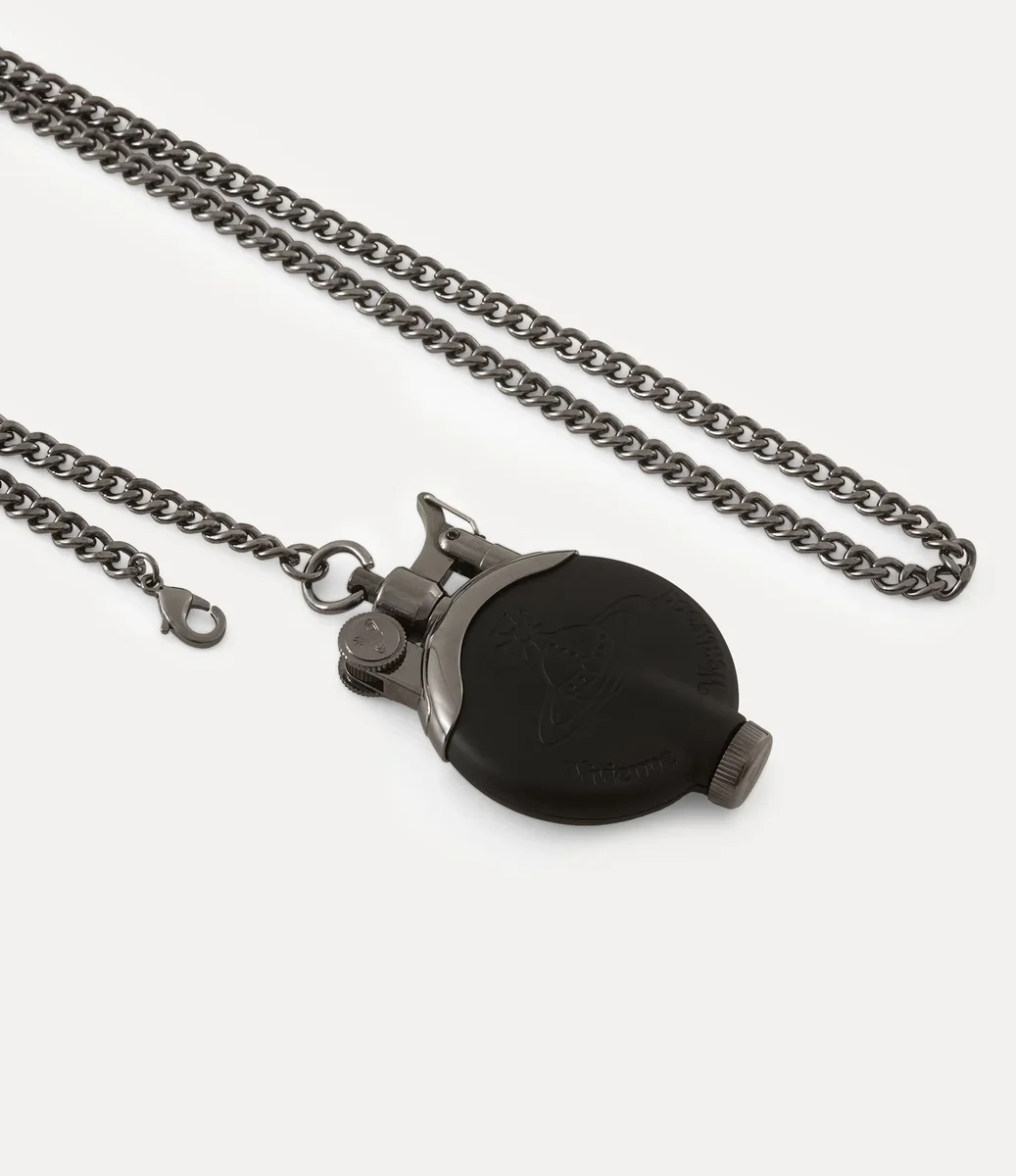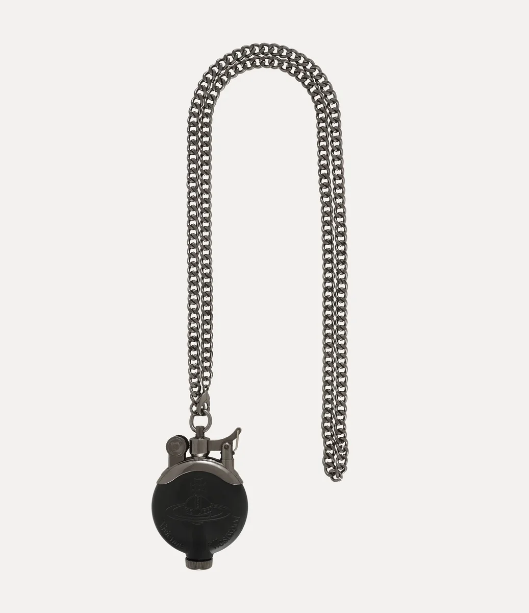 Esta temporada, la cadena Lighter vuelve con una mezcla de acabados plateados y mates. El diseño circular, inspirado en los relojes victorianos antiguos, cuelga de una cadena de eslabones y presenta una silueta de orbe grabada en la parte delantera. El orbe simboliza la tradición, rodeado por los anillos celestes de Saturno, que representan el futuro.
