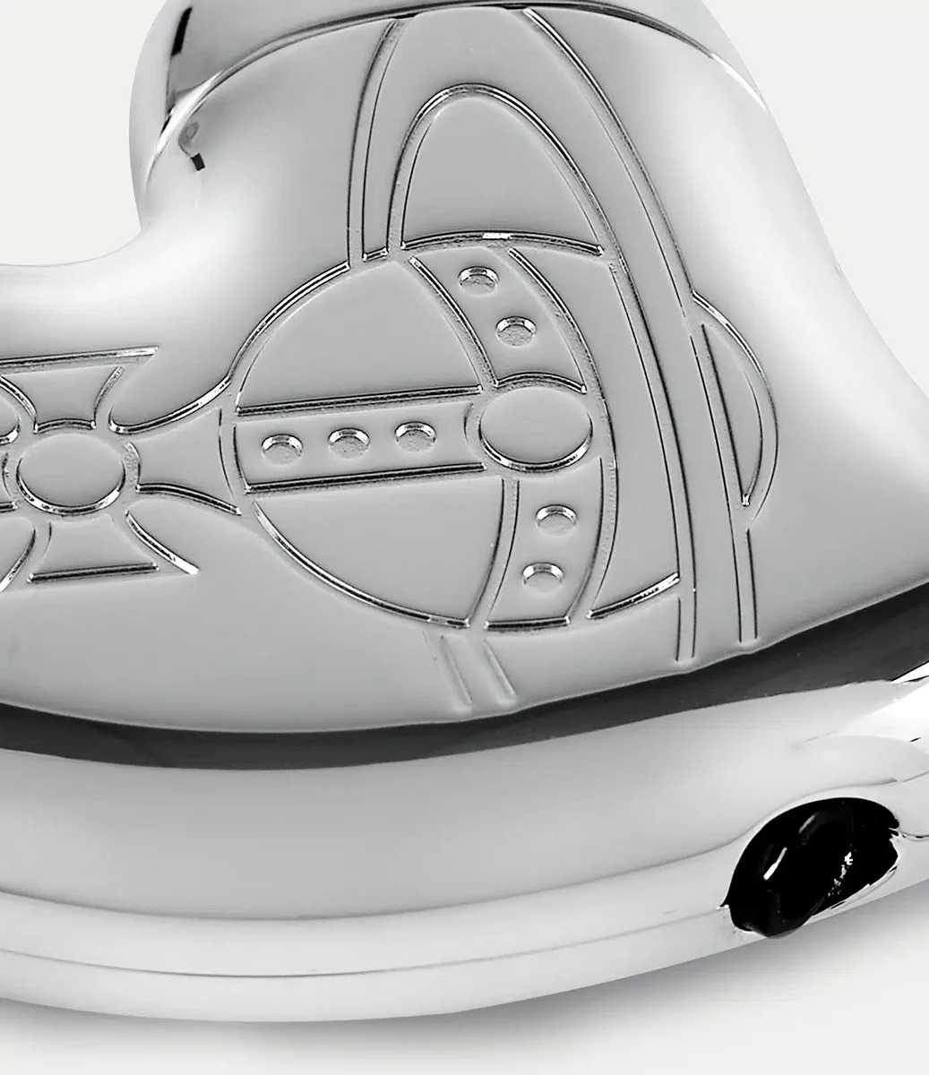 Nuestro encendedor Heart presenta un acabado plateado pulido, con una silueta asimétrica en forma de corazón, que recuerda el afecto de Vivienne por la humanidad y el planeta. La pieza está delicadamente grabada con el motivo «Line Orb», característico de la casa, que simboliza la tradición, rodeado por los anillos celestes de Saturno, que simbolizan el futuro.