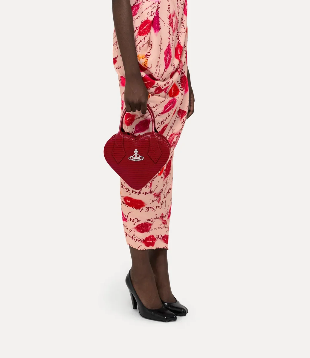 Nuestro bolso bandolera Josephine Heart reinterpreta el motivo en forma de corazón característico de la casa, recordando el afecto de Vivienne por la humanidad y el planeta. Confeccionado en piel con relieve efecto cocodrilo, el bolso presenta un elegante diseño de un solo compartimento con cierre de cremallera, adornado con nuestro clásico motivo «Line Orb».