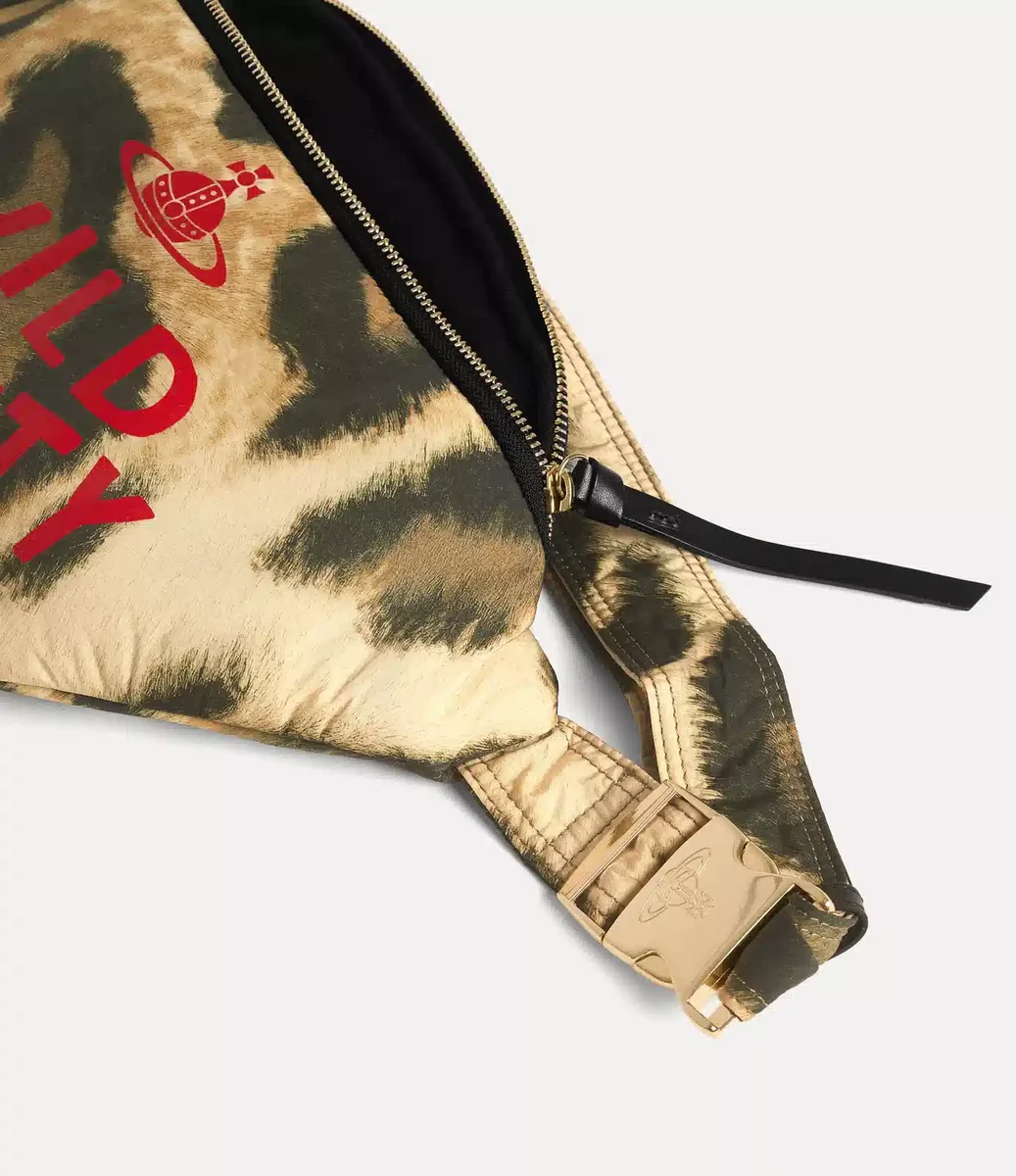 Nuestro bolso Ada tiene un perfil de nailon en forma de media luna, estampado con un atrevido motivo de leopardo que hace referencia a nuestra colección Gold Label Otoño-Invierno 2001, «Wild Beauty». Estampado en la parte delantera, el emblema del orbe se encuentra sobre el eslogan «Wild Beauty» en rojo vivo, mientras que un cierre de cremallera superior seguro y una correa ajustable completan el diseño.