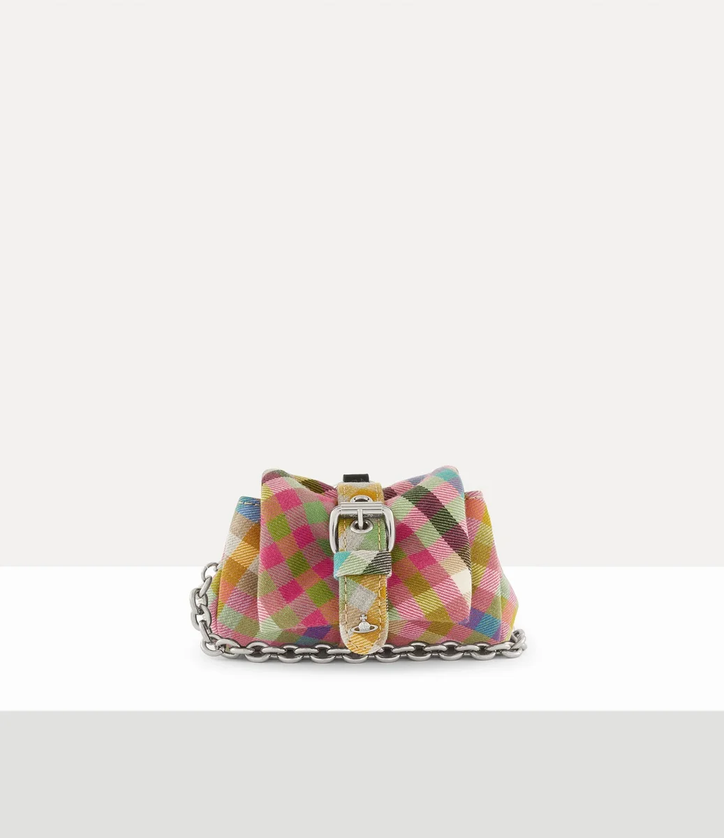 Nuestro bolso Hazel Treasure Charm reinterpreta el diseño emblemático «Hazel Treasure» de la casa, con el vibrante motivo «Heather Check» de lana de esta temporada. Confeccionado con una correa escultural que envuelve la silueta de estructura suave, la pieza está rematada con nuestro emblema en bajorrelieve en la parte delantera.
