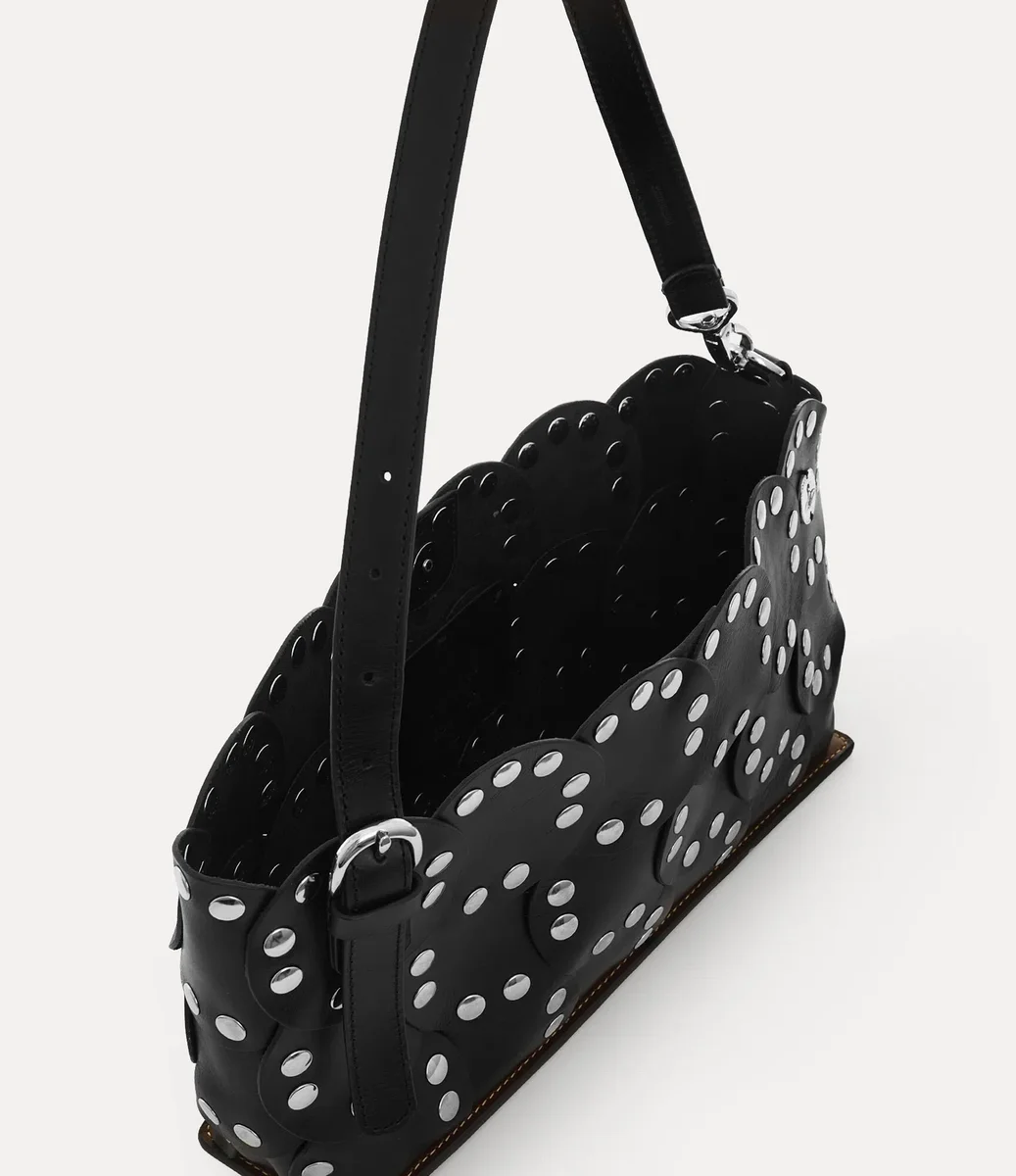 El bolso Liz Concho, elaborado en colaboración con Ethical Fashion Initiative para nuestra colección Made in Kenya, presenta círculos de piel cortados a mano y unidos entre sí para evocar el aspecto de una armadura antigua. Está rematado con un colgante en forma de esfera y una correa ajustable con hebilla de rodillo.