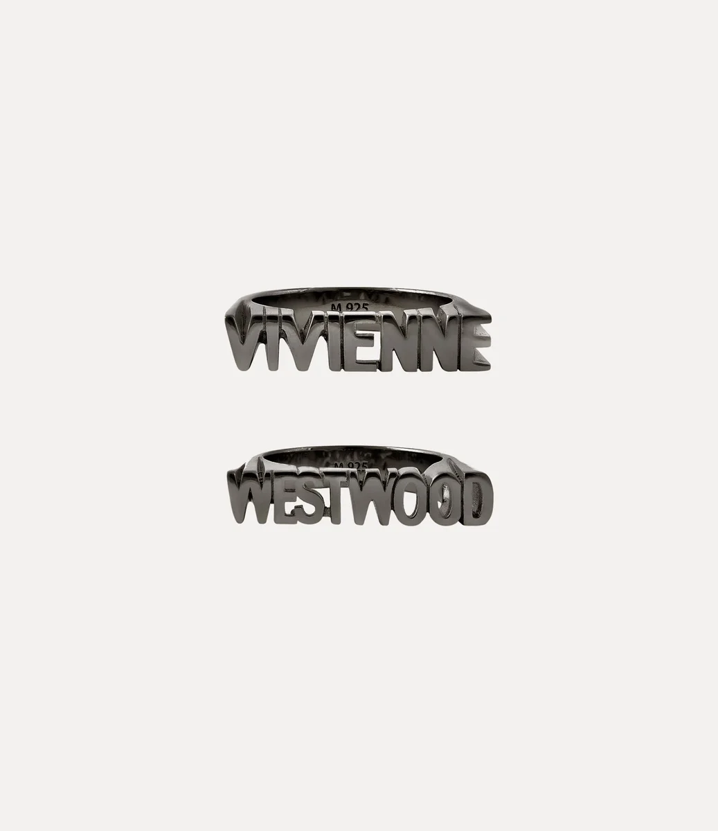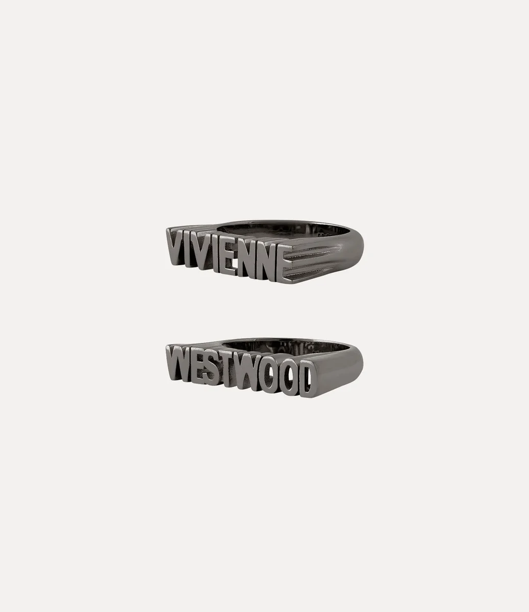 Nuestro anillo Essex está elaborado con plata reciclada y acabado con un baño pulido en tono bronce. Con dos llamativas bandas metálicas, una con la inscripción «Vivienne» y la otra con «Westwood», el diseño se acentúa con intrincados detalles recortados que trazan el contorno de cada letra.