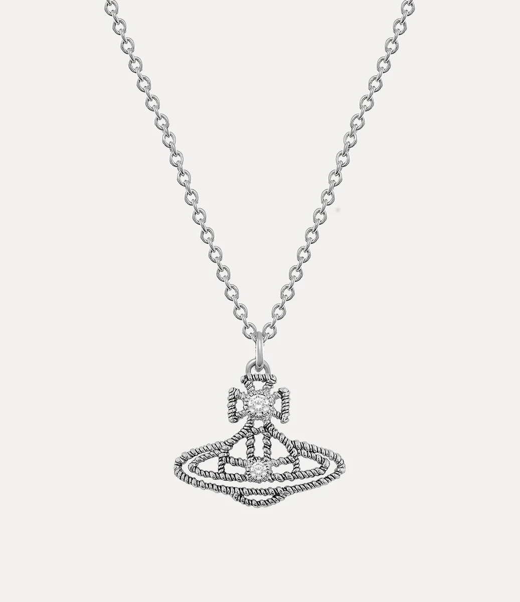 El collar con colgante Coretta es un nuevo diseño para esta temporada, que revive la silueta clásica de la casa con detalles de cuerda trenzada. El motivo está tratado con una ligera pátina para acentuar su intrincada textura y cuelga de una delicada cadena, asegurada con un cierre de langosta y una cadena extensible para ajustar la longitud.