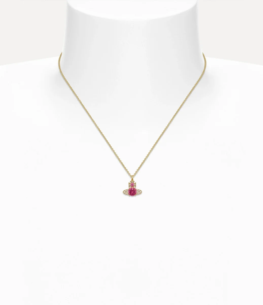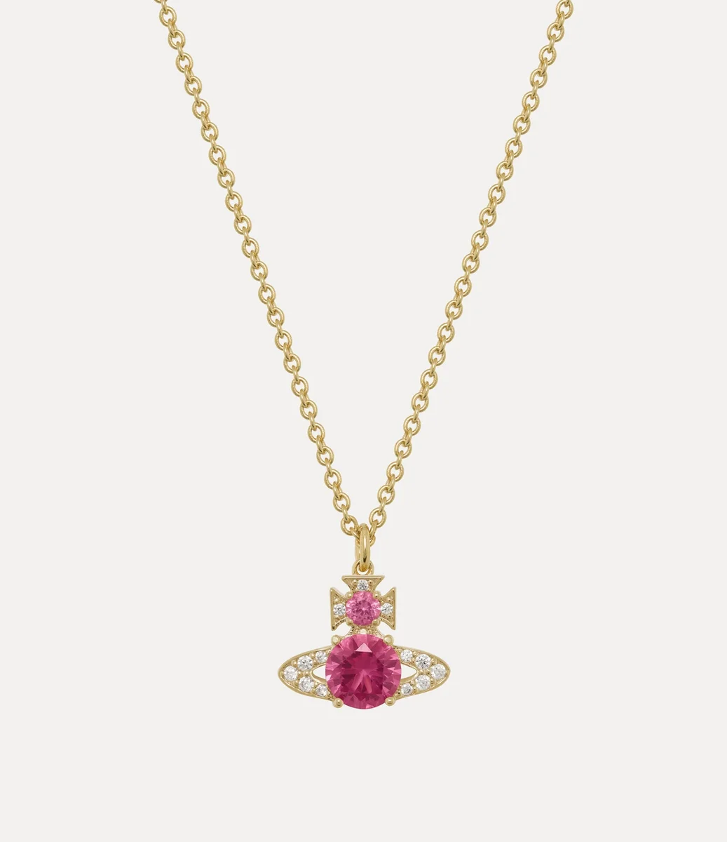 Nuestro collar con colgante Ismene vuelve esta temporada con un acabado pulido en tono dorado, adornado con cristales rosas y blancos en una elegante montura pavé. Con delicados recortes a lo largo de los anillos de Saturno, el diseño se completa con una etiqueta ovalada, grabada con nuestras letras en el cierre de mosquetón.