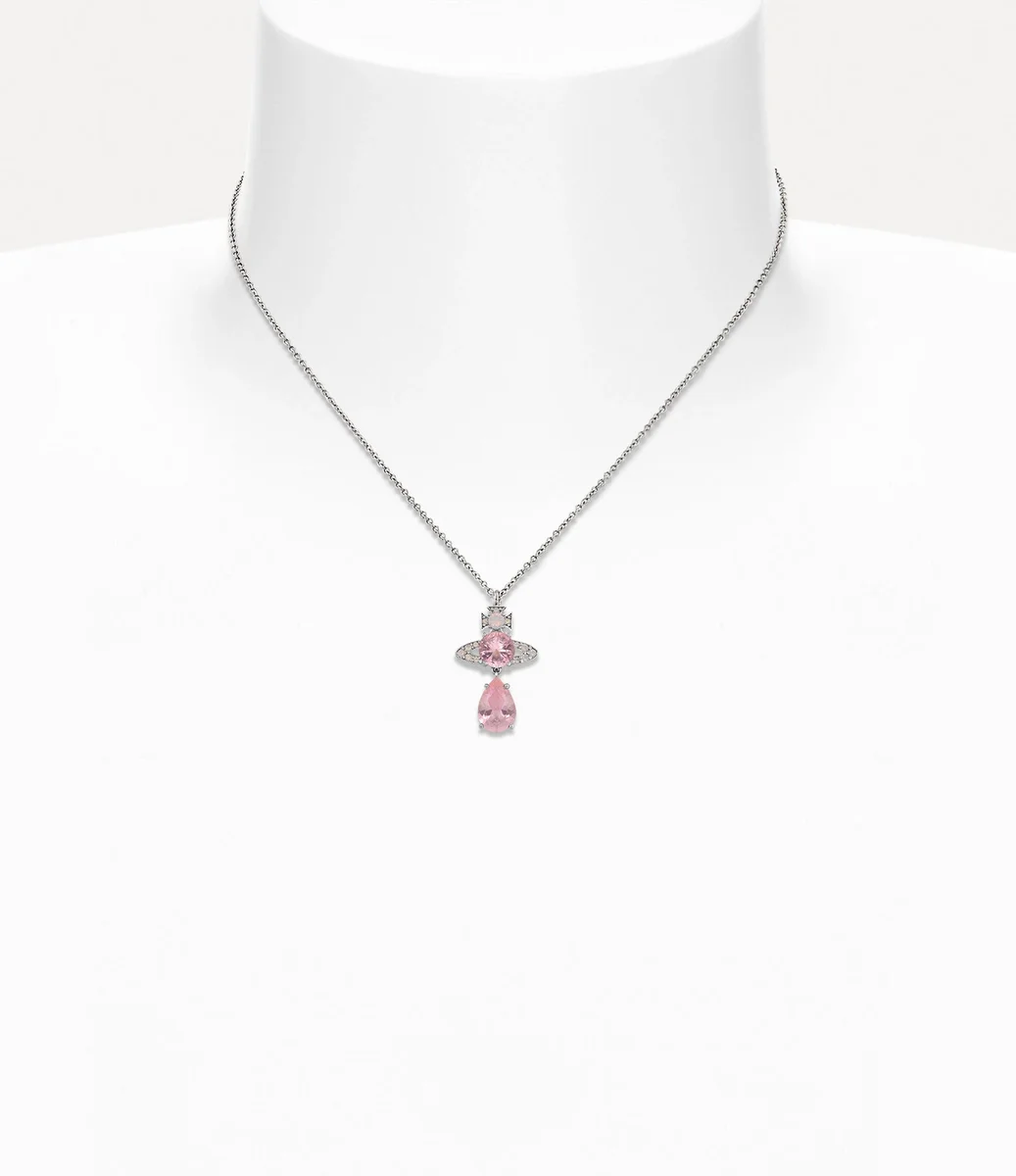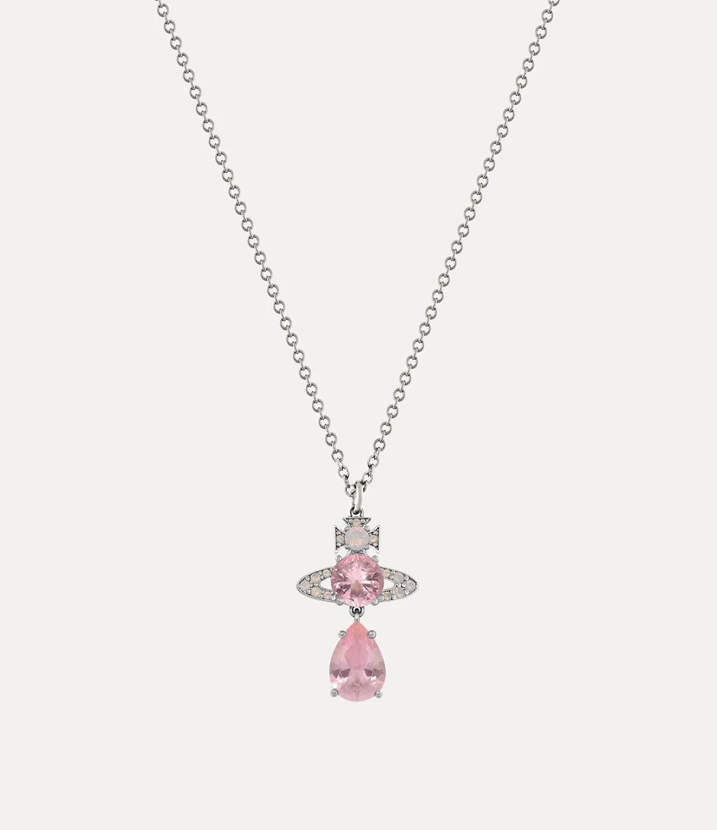 Nuestro collar con colgante Ismene Drop se ha actualizado esta temporada con detalles de cristales de color rosa, y se completa con un colgante en forma de esfera que desciende hasta un cristal en forma de pera. La pieza se abrocha con un cierre de langosta seguro, con una etiqueta ovalada con la letra grabada para rematar.