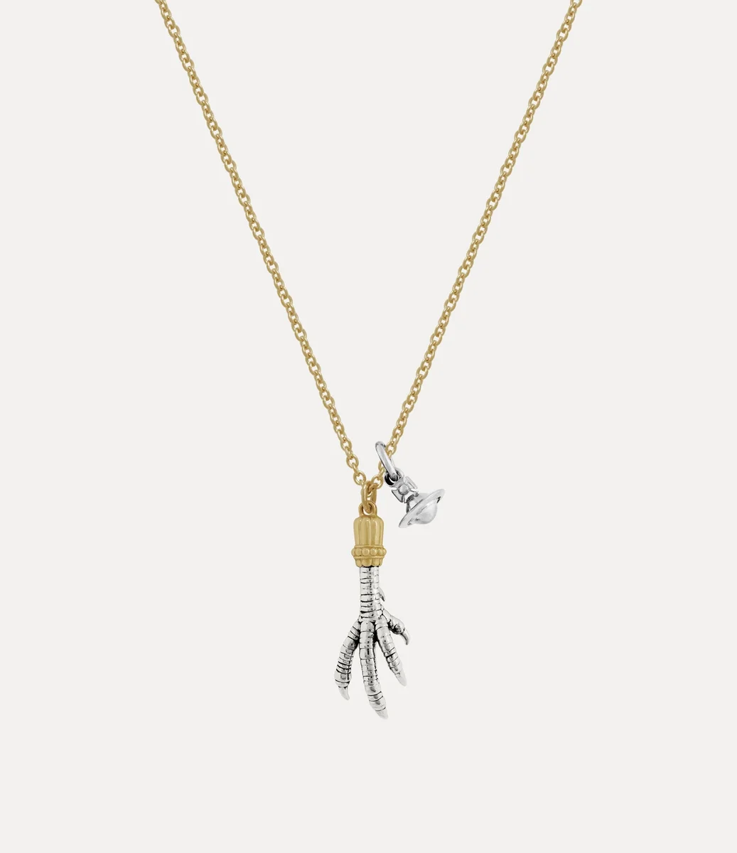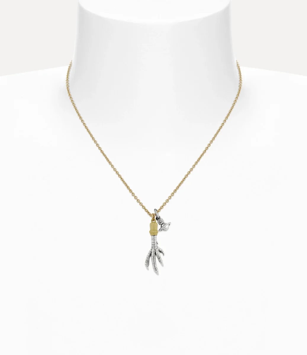 El collar con colgante Joselita presenta el llamativo motivo de la pata de pollo de esta temporada, símbolo de buena suerte. Realzado con una pátina negra para resaltar sus texturas, el colgante presenta un acabado de metales mixtos con baño pulido y una esfera colgante, que simboliza la filosofía de la casa de llevar el pasado al futuro.