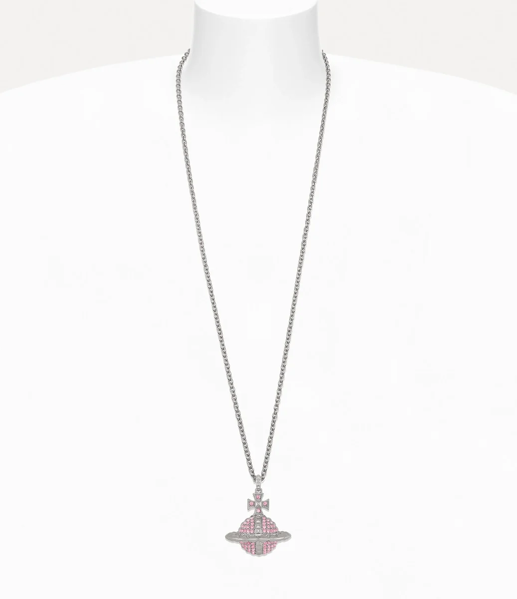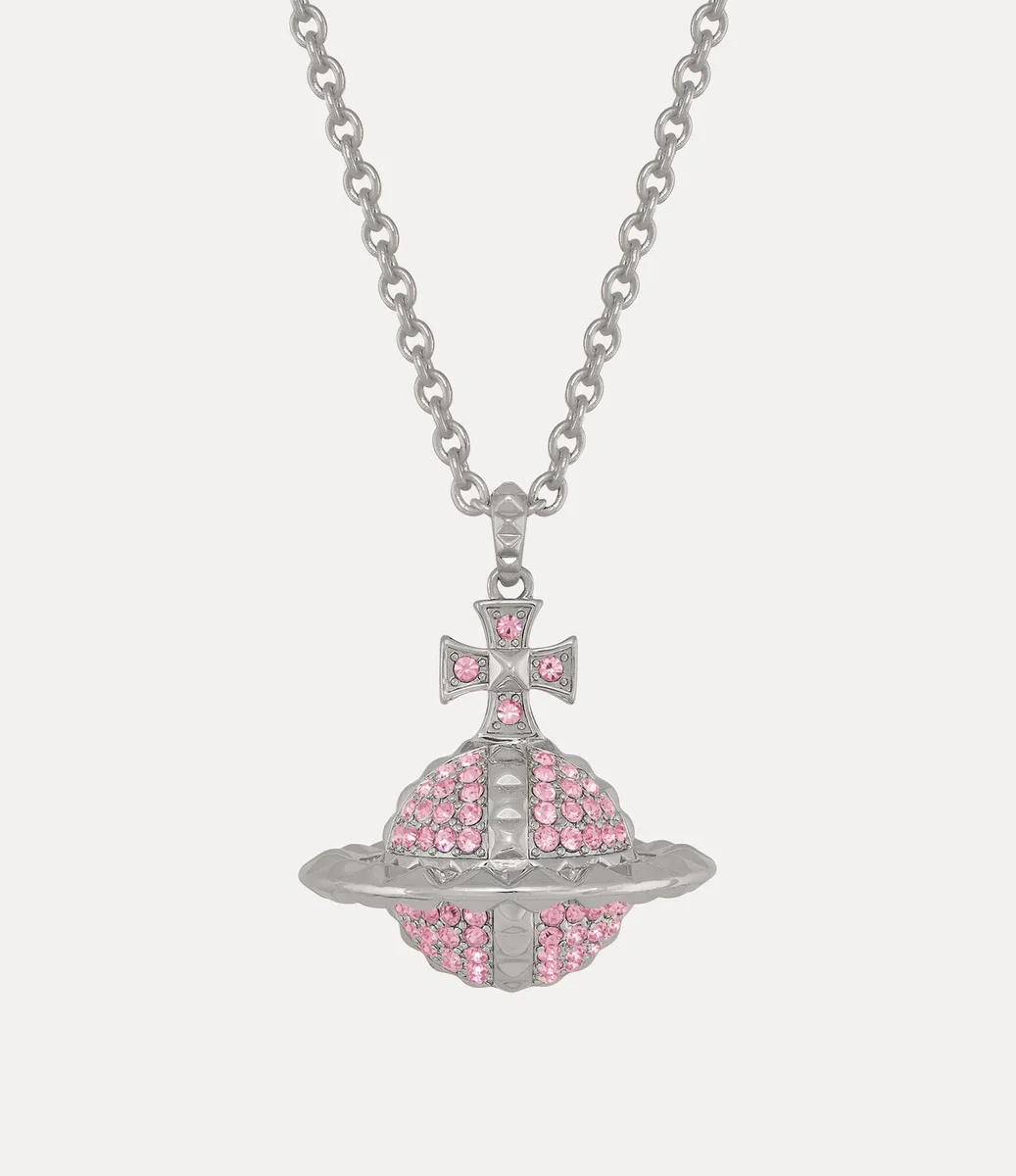 Nuestro collar con colgante Mayfair Large Orb se ha renovado con un baño plateado y se ha incrustado con cristales de color rosa claro. Los detalles piramidales recorren todo el diseño tridimensional del orbe, simbolizando la inconformidad y rindiendo homenaje a la icónica estética punk de la casa.