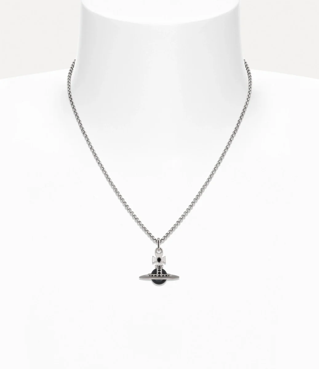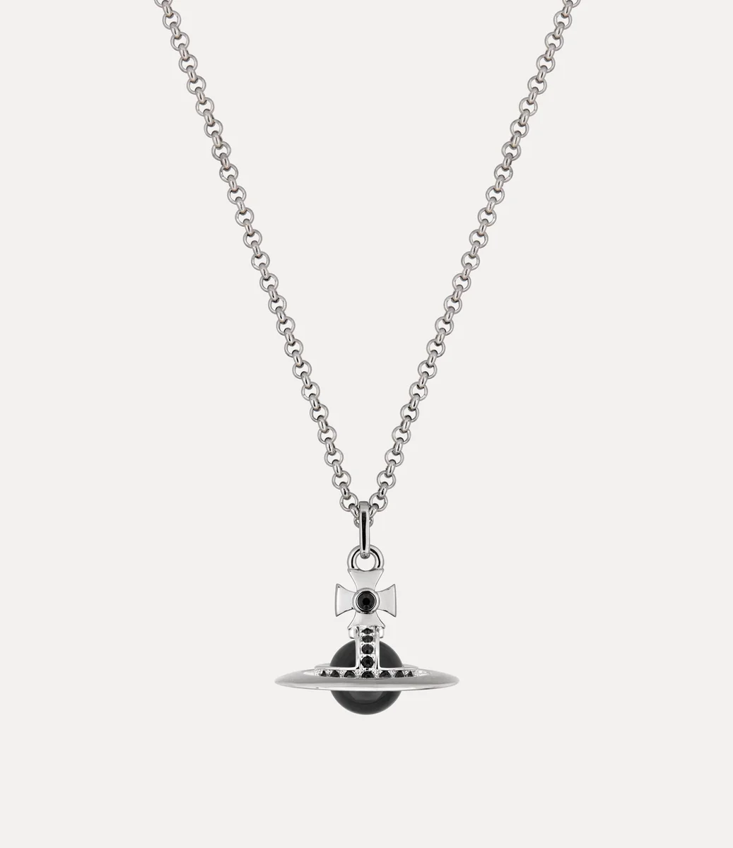 Nuestro emblemático collar New Tiny Orb Pendant se reinventa esta temporada con una gema esférica negra en el centro. Detallado con cristales tonales en la parte superior en forma de cruz y el motivo esférico, el diseño se completa con herrajes emblemáticos y una etiqueta ovalada con letras grabadas en el cierre de langosta seguro.