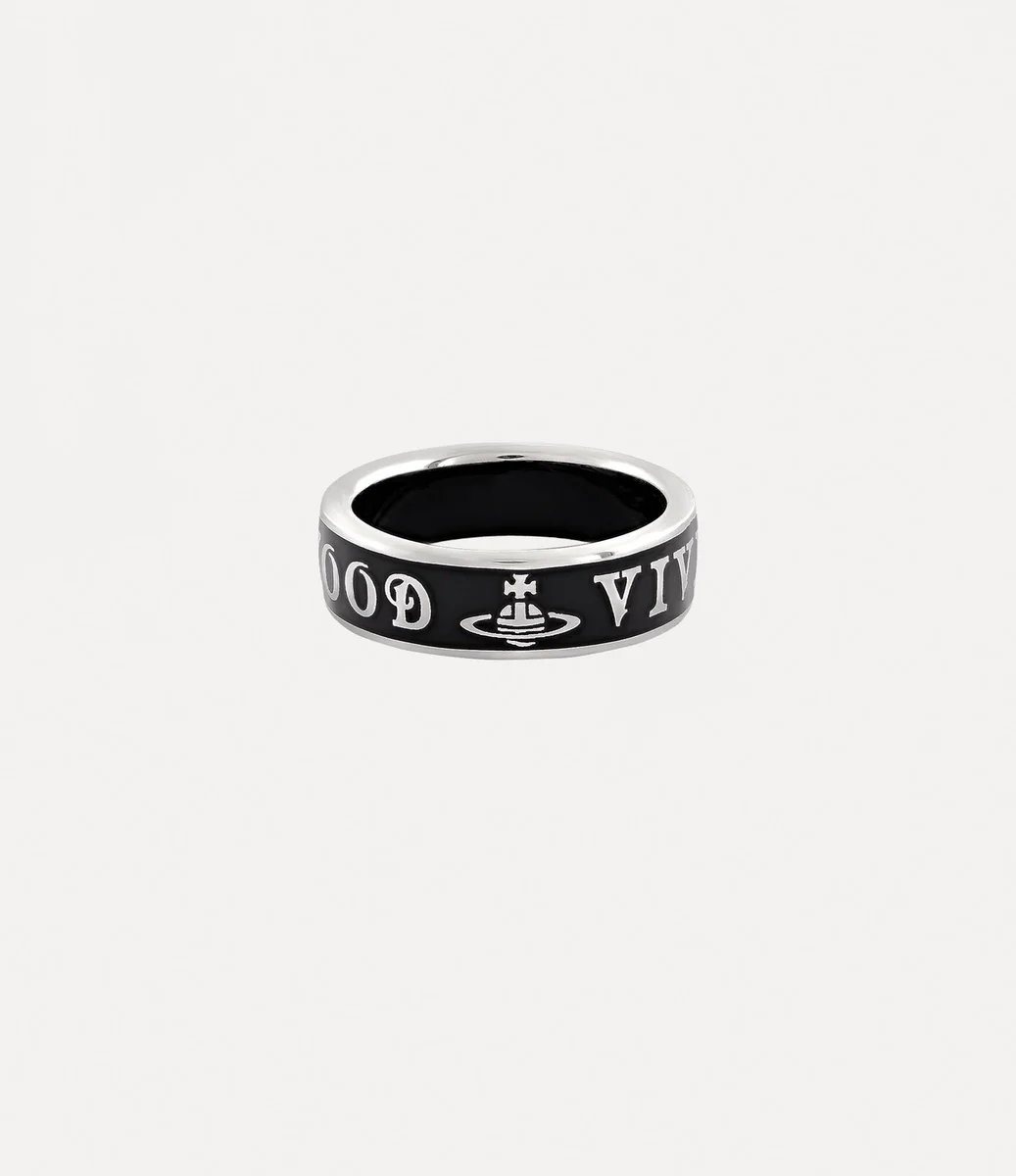 Fabricado en plata reciclada chapada en platino, nuestro emblemático anillo Conduit Street se inspira en el icónico brazalete Conduit Street, con las letras «Vivienne Westwood» grabadas de forma intrincada a lo largo de la banda. Con detalles en esmalte contrastante, la pieza tiene un acabado con un motivo central en forma de esfera.