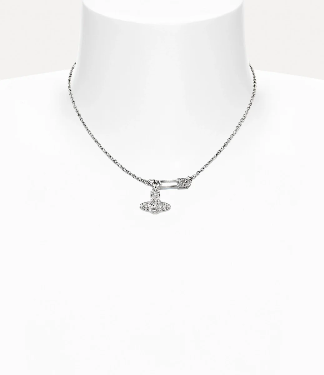Nuestro collar con colgante Lucrece presenta detalles adornados con cristales en tonos plateados pulidos, acentuados por nuestro característico motivo de imperdible junto con el icónico diseño de esfera. El imperdible, símbolo atemporal de la inconformidad, refleja la visión distintiva de Vivienne inspirada en el punk.