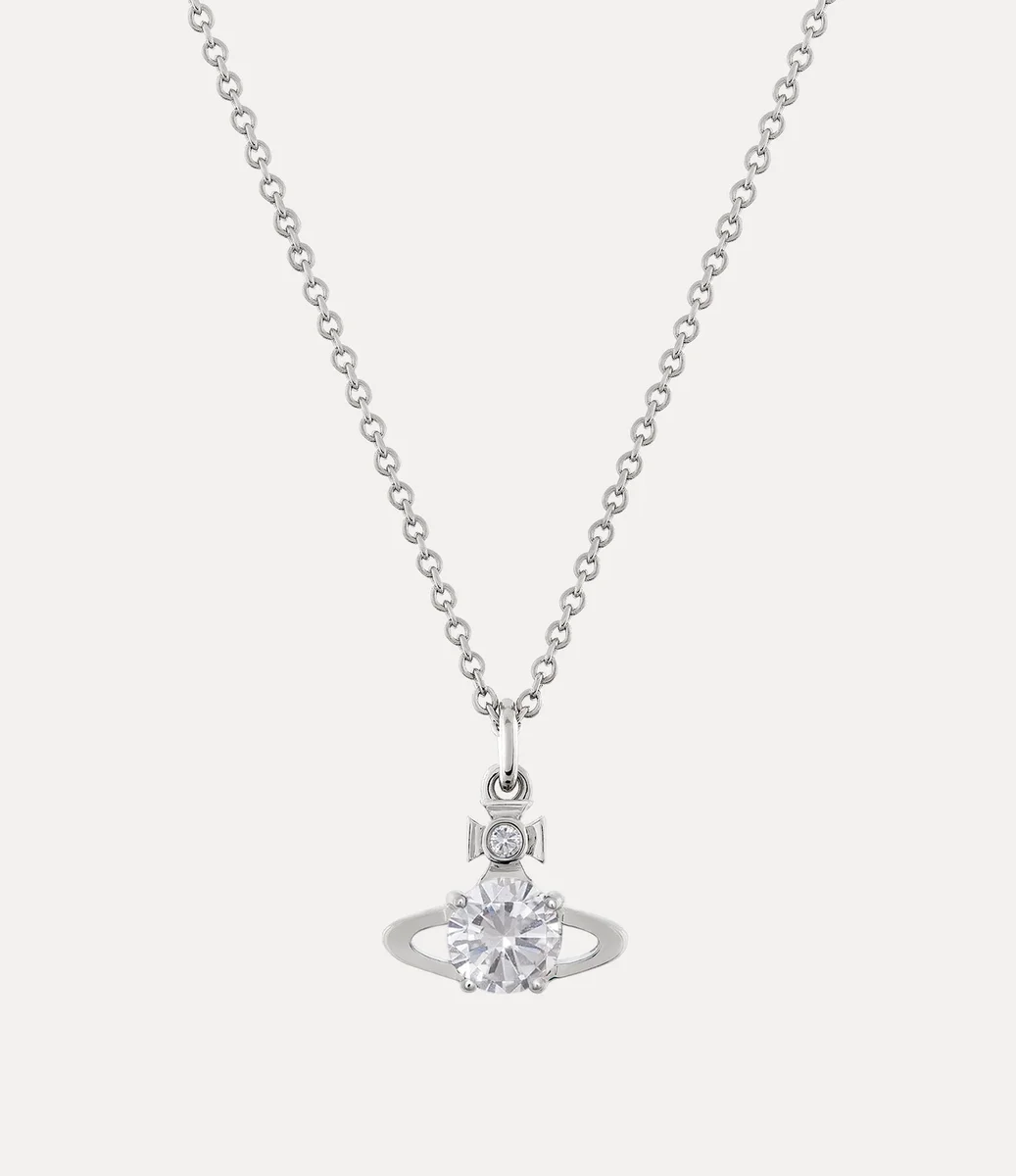 Nuestro característico motivo esférico aparece en el centro del collar con colgante Reina de esta temporada, sinónimo de la visión de Vivienne de llevar la tradición al futuro. La pieza cuenta con una cadena ajustable con una etiqueta grabada con una letra que cuelga del cierre de langosta, con un acabado plateado y adornada con cristales blancos.