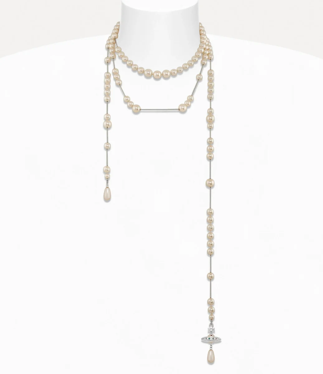 Las perlas son un elemento esencial de la iconografía de la casa, ya que evocan una sensación de grandeza y lujo. El collar Broken Pearl se presentó por primera vez en la colección «Storm in a Teacup» de otoño-invierno 1996-97, inspirada en los motivos decorativos del arte rococó. Esta pieza cuenta con perlas de vidrio y los elementos «Broken» característicos de Vivienne, diseñada para mujeres que «se enfrentaban al horror de la uniformidad y el minimalismo».