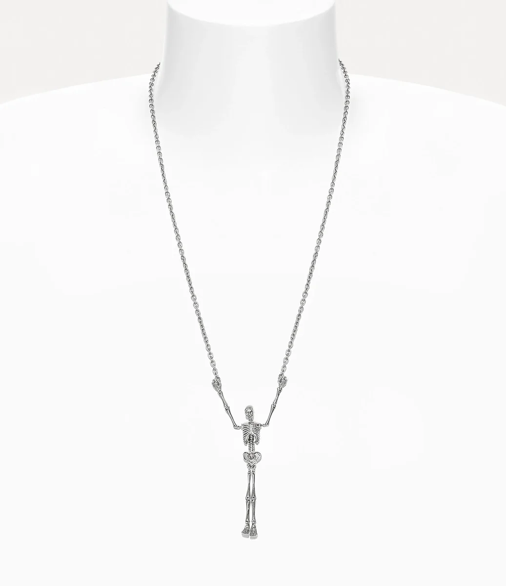 Presentado por primera vez en nuestra colección «Pirate» Otoño-Invierno 1982-1983, el motivo del esqueleto se ha convertido en sinónimo de la estética punk de la casa. El collar largo Skeleton presenta una silueta de esqueleto con articulaciones móviles, con un acabado en tono plateado pulido.
