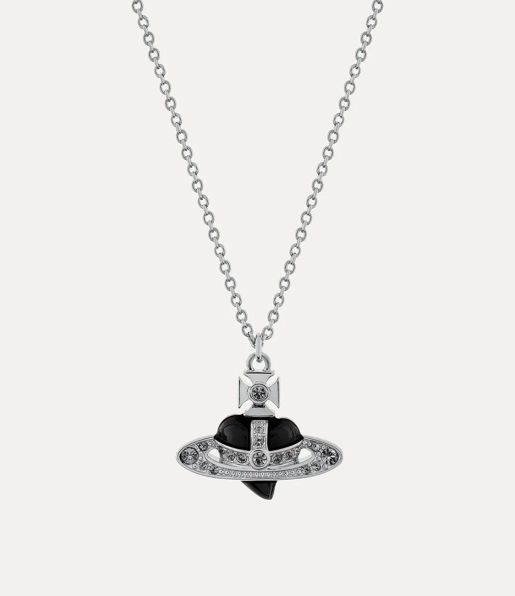 Nuestro nuevo collar con colgante de corazón de diamantes presenta un perfil metálico en tono plateado, con detalles adornados con cristales y una silueta de corazón asimétrica. La forma de corazón se ha convertido en un estilo característico de la casa, sinónimo del afecto de Vivienne por la humanidad y el planeta.