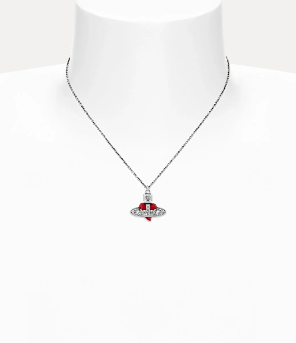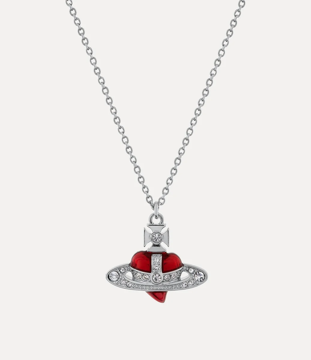 La forma de corazón se ha convertido en un estilo característico de la casa, sinónimo del afecto de Vivienne por la humanidad y el planeta. Nuestro collar New Diamante Heart Pendant revive nuestra icónica silueta de corazón asimétrica, perfilada con cristales de color blanco y rematada con esmalte rojo en el centro del diseño.