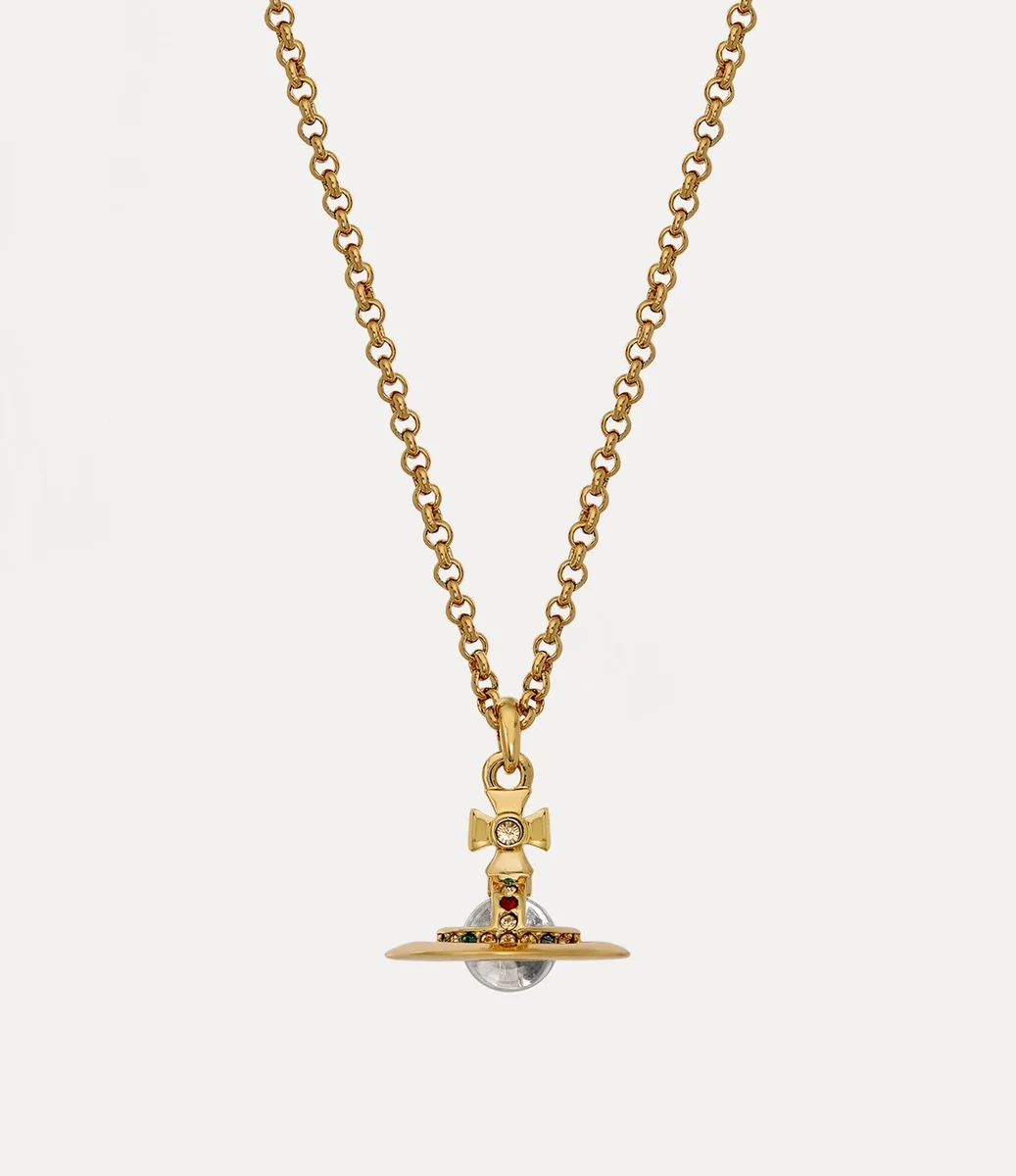 Nuestro nuevo collar con colgante Petite Orb se ha actualizado esta temporada con un baño dorado. Incrustado con brillantes detalles de cristales de colores, el diseño incorpora nuestro característico orbe tridimensional en el centro de la cadena, sinónimo de la visión de Vivienne de lanzar la tradición hacia el futuro.