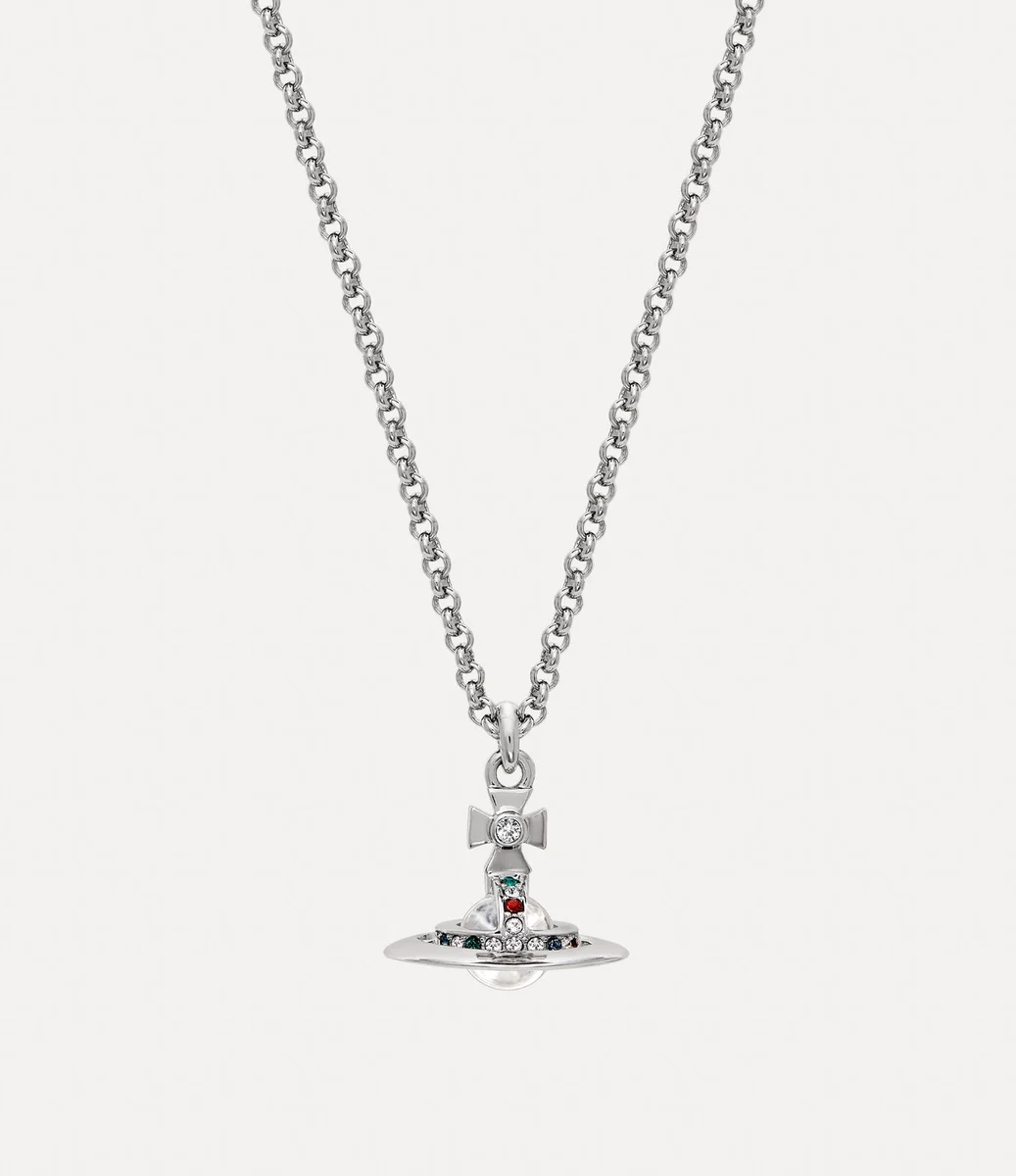 Nuestro nuevo collar con colgante Petite Orb se ha convertido en un estilo emblemático de la casa. Esta temporada, la pieza se renueva con un baño plateado y una esfera tridimensional de colores rodeada por un anillo de Saturno con incrustaciones de cristales, sinónimo del espíritu de lanzar el pasado hacia el futuro.