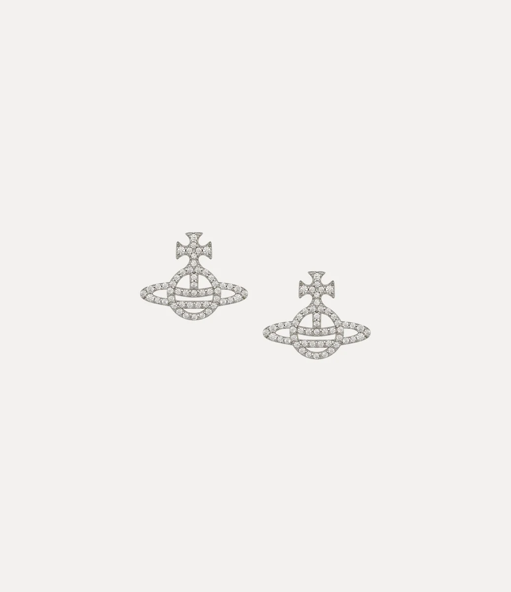 Nuestros aretes Calliope presentan un acabado de plata chapada en platino, adornado con detalles de cristal blanco alrededor del contorno del diseño. La pieza cuenta con cierres de mariposa personalizados y nuestro motivo «Line Orb», sinónimo de la visión de Vivienne Westwood de lanzar la tradición hacia el futuro.