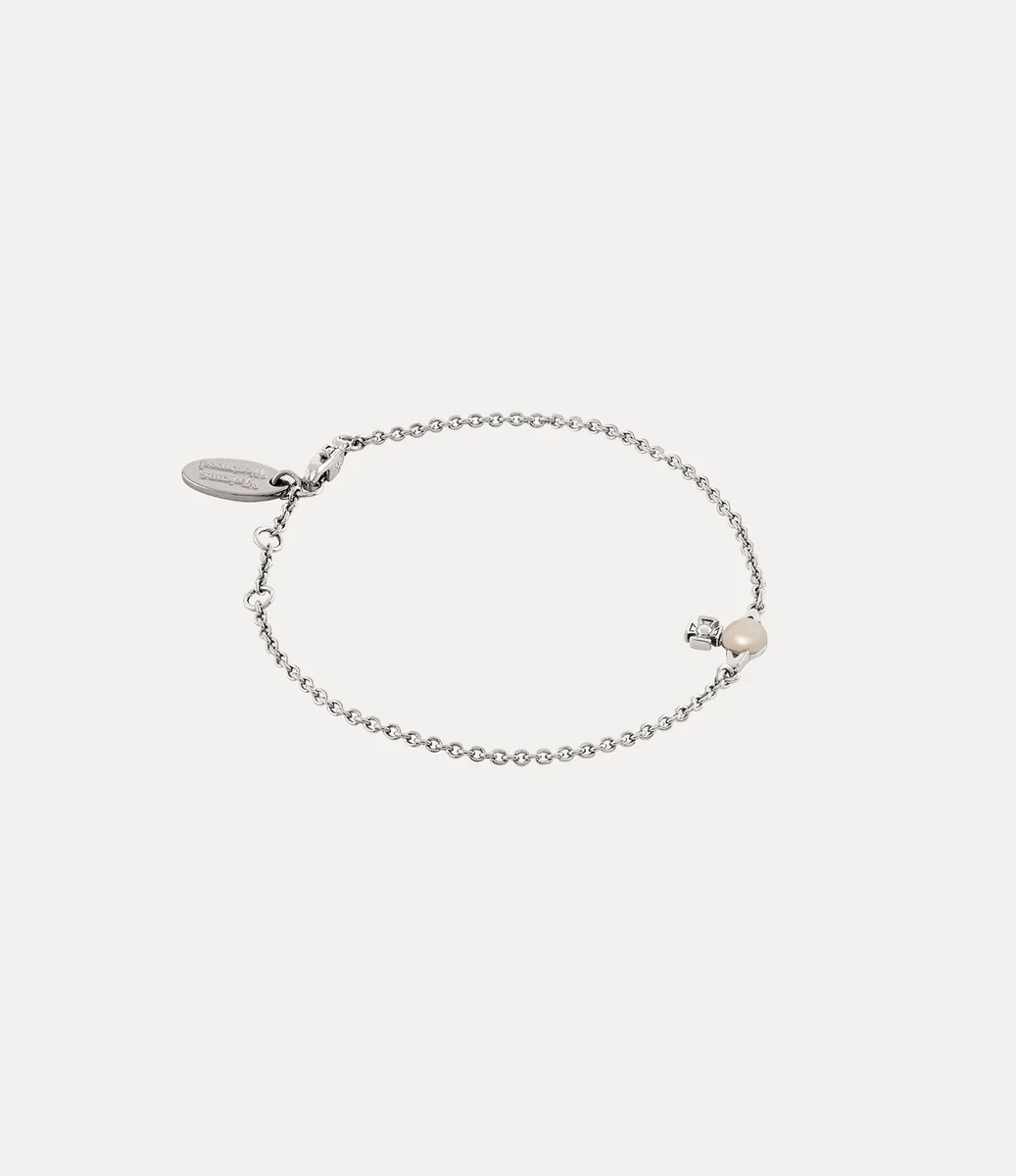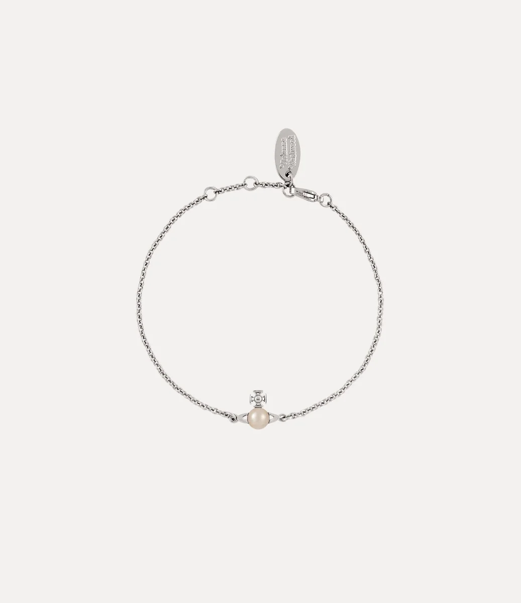 Las perlas son esenciales en la iconografía de la casa, ya que evocan una sensación de grandeza y lujo. La pulsera Balbina presenta una brillante perla de vidrio en el centro del motivo del orbe, que evoca la visión de Vivienne de lanzar la tradición hacia el futuro.