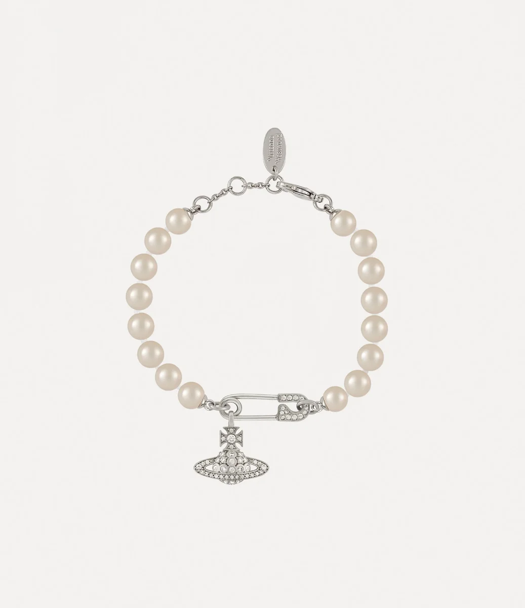 Las perlas son un elemento clave de la iconografía de la casa, ya que representan tanto el lujo como la rebeldía. La pulsera Lucrece Pearl cuenta con un hilo de perlas de vidrio, acentuado por una esfera con incrustaciones de cristal que cuelga de un charm en forma de imperdible. Este motivo atemporal simboliza la inconformidad, reflejando el característico enfoque punk de Vivienne.