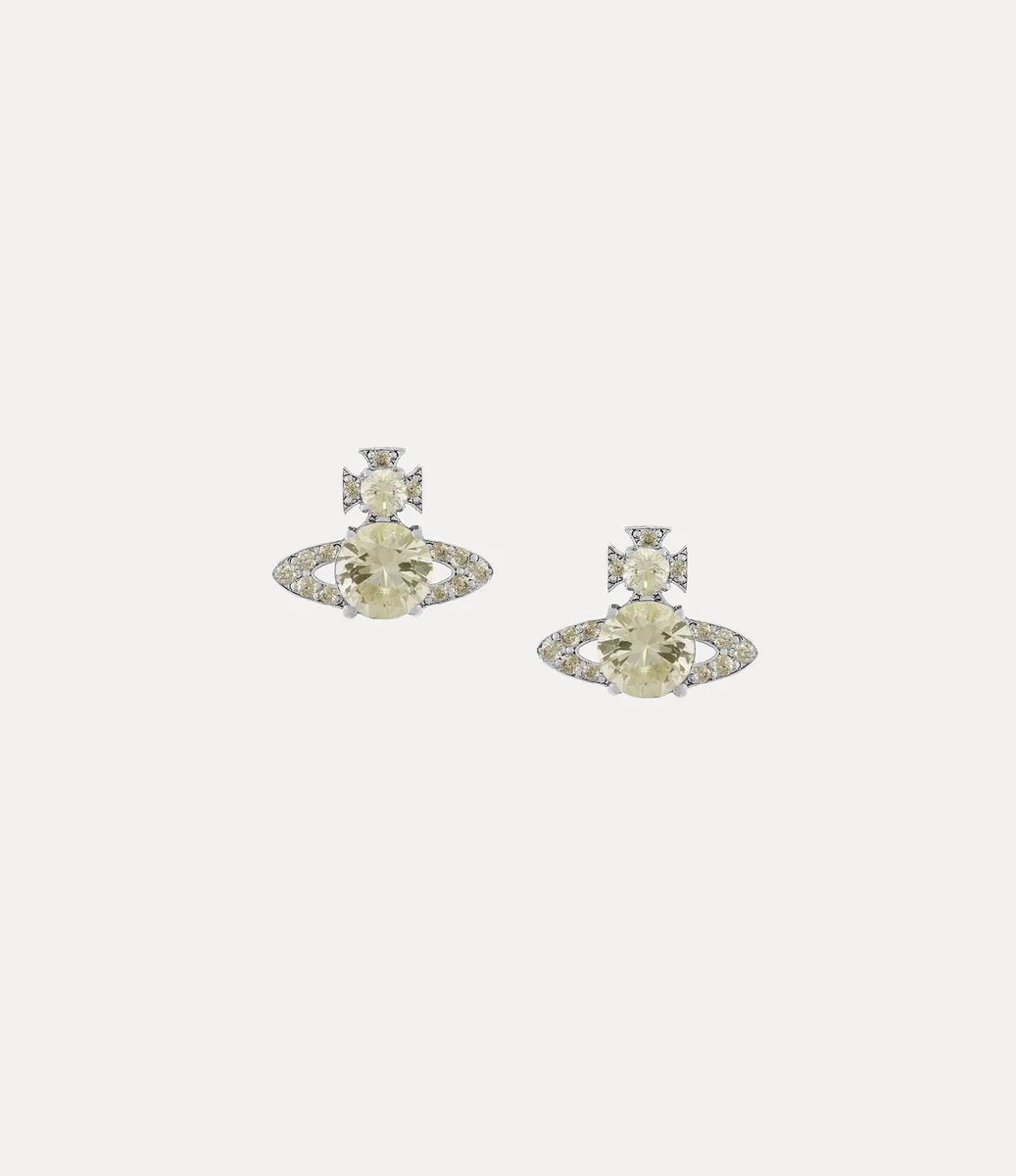 Nuestros aretes Ismene regresan esta temporada con un acabado plateado pulido y detalles de cristal amarillo. La silueta esférica se inspira en el motivo esférico característico de la casa, sinónimo de la visión de Vivienne de lanzar la tradición hacia el futuro.