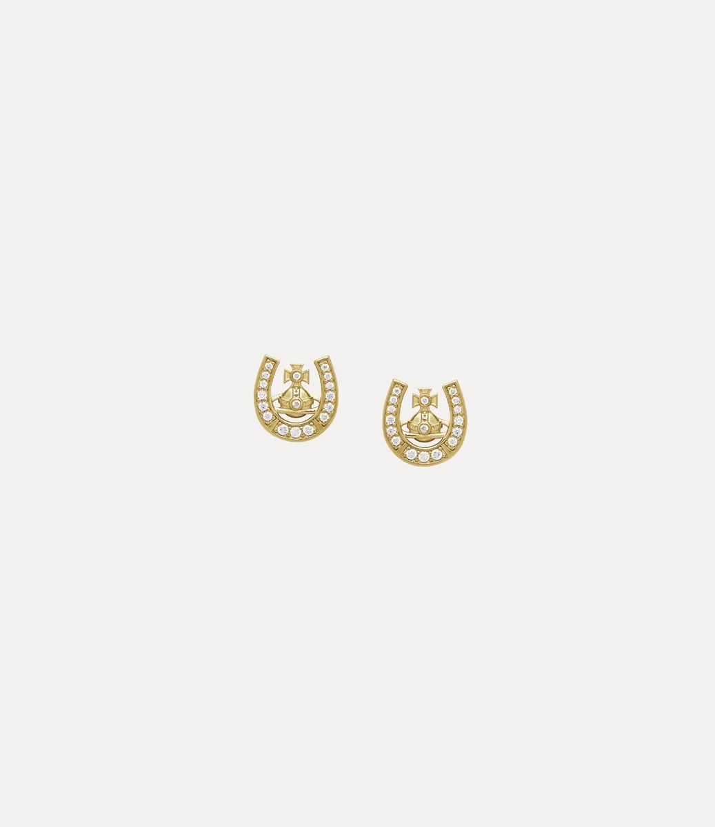 Nuestros aretes Mare reinterpretan la iconografía característica de la casa, con un orbe dorado rodeado por un motivo central en forma de herradura, símbolo de buena suerte y protección. Adornada con cristales tonales para un brillo sutil, la pieza está rematada con nuestro clásico cierre de mariposa en forma de orbe.