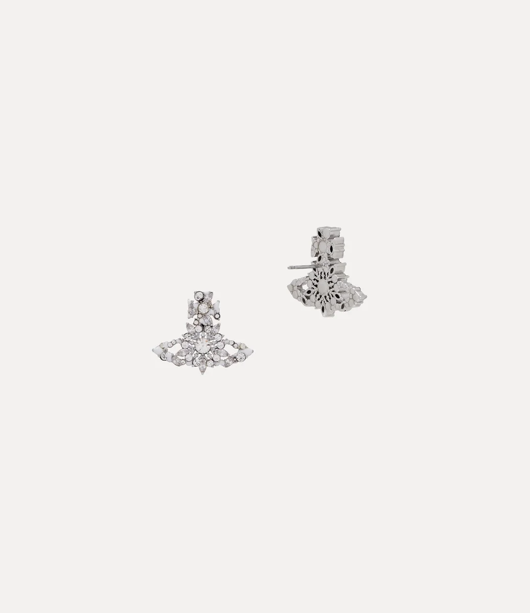 Los aretes Mariette reinterpretan el motivo esférico característico de la casa en un refinado diseño inspirado en un copo de nieve, adornado con cristales de circonita cúbica redondos y en forma de lágrima. Acentuados con delicados detalles esmaltados, el par tiene un acabado pulido con baño plateado.