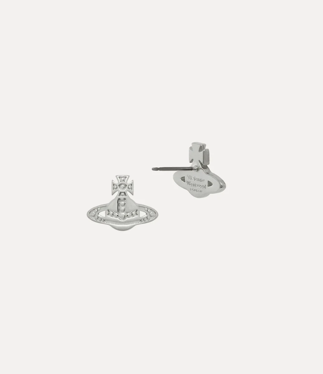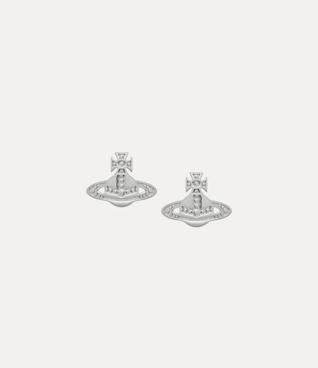 Nuestros aretes Marinetta están elaborados en metal plateado pulido y reinterpretan el diseño esférico característico de la casa con detalles intrincadamente tallados. El par está rematado con un clásico cierre de barra y se sujeta con los cierres de mariposa en forma de esfera característicos de la casa.