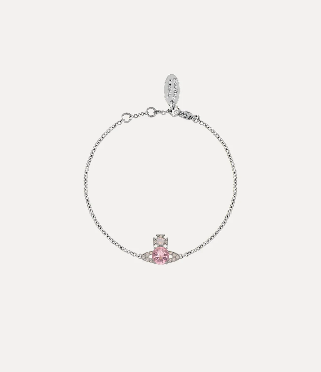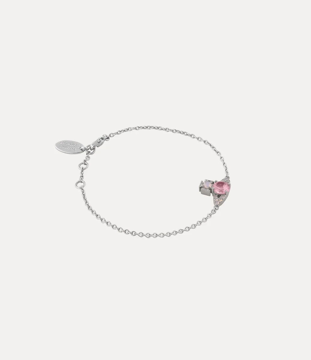 Nuestra pulsera Ismene se ha actualizado esta temporada con brillantes detalles de cristal rosa y un acabado plateado pulido. En el centro se encuentra un orbe, que simboliza la tradición, rodeado por los anillos celestiales de Saturno, que simbolizan el futuro.